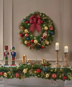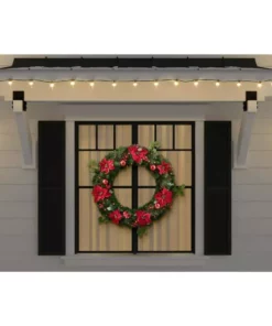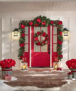 Home Accents Holiday 17 ft. Berry Bliss Mixed Pine Artificial Christmas Garland with Poinsettia