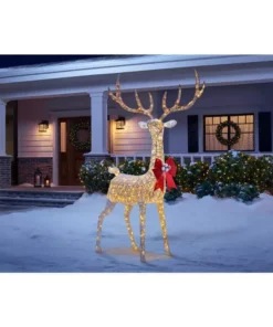 Home Accents Holiday 8.5 ft Warm White LED Giant Buck with Bow Holiday Yard Decoration