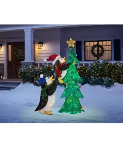 Home Accents Holiday 62 in Penguins with Christmas Tree Holiday Yard Decoration
