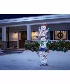 Home Accents Holiday 7 ft Cool White LED 3 Stacked Snowmen Holiday Yard Decoration