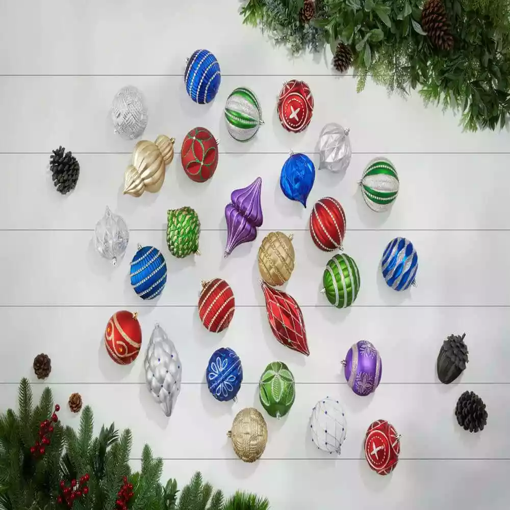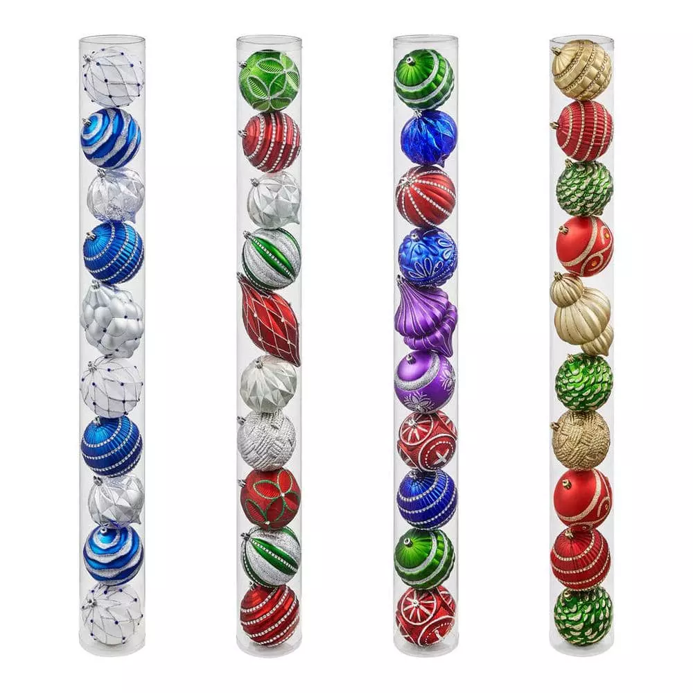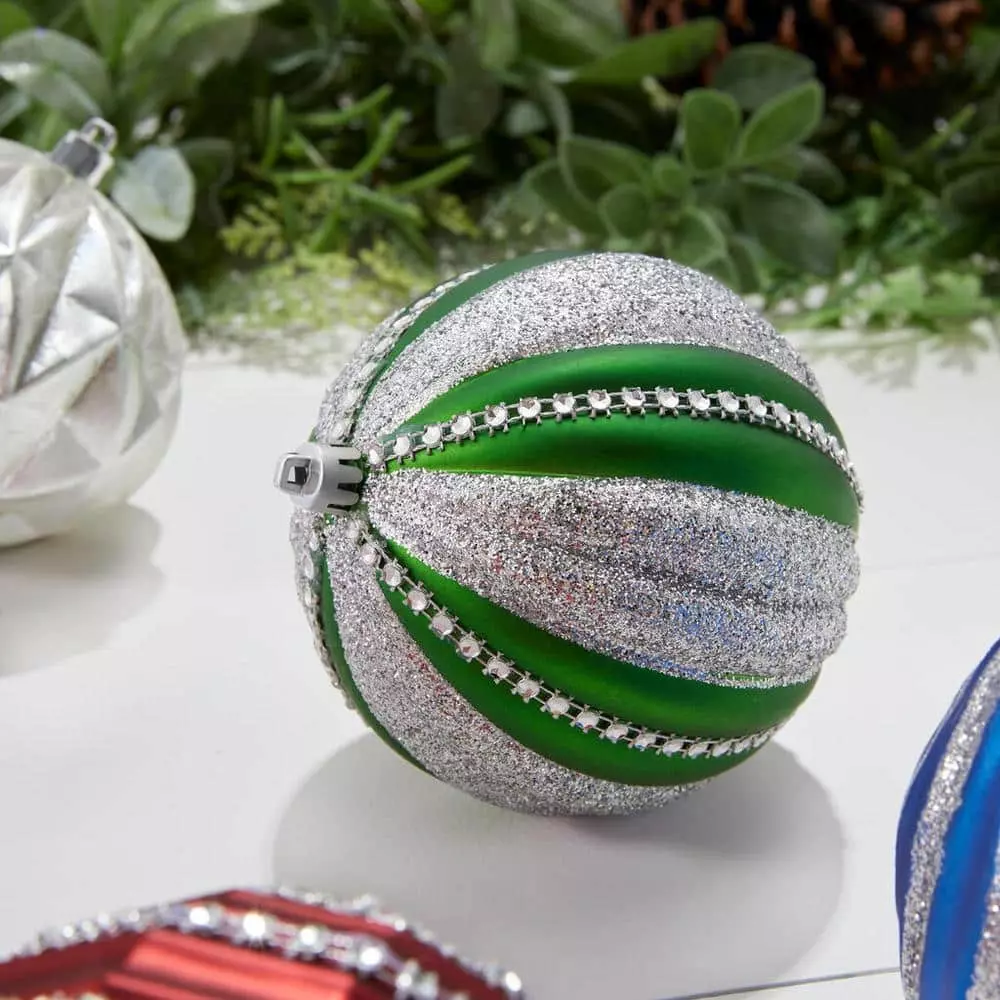 Get ready for a memorable Christmas with these 3.9-inch Home Accents Holiday shatterproof ornaments. An array of festive colors blends in with your holiday decorative scheme, while the glitter accents shimmer throughout the seasons. Compatibility with a wide range of ornament hooks (not included) lets you easily dress up your Christmas tree, wreath or garland, and the hand-painted design helps you showcase an attractive, detailed design. These Home Accents Holiday shatterproof ornaments are made of sturdy plastic for lasting use.