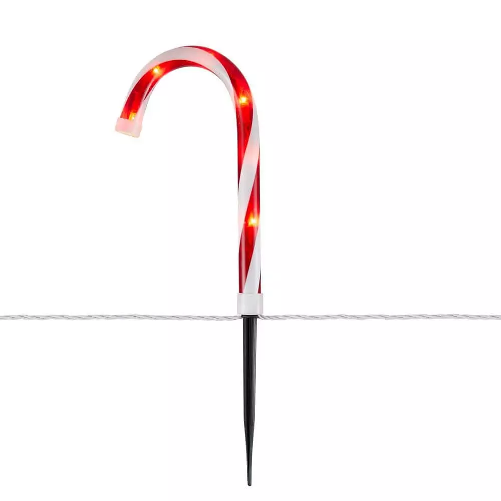 Create a sweet welcome for your holiday guests with these 10-inch pre-lit candy cane pathway lights. A connectible design lets you link multiple sets together and brighten up an entire walkway or drive. Featuring candy cane shapes with classic red and white colors, these ornamental lights are the perfect finishing touches for your festive seasonal setup. This set of eight pre-lit candy cane pathway lights is easy to install and use, letting you easily create a classic Christmas scene.