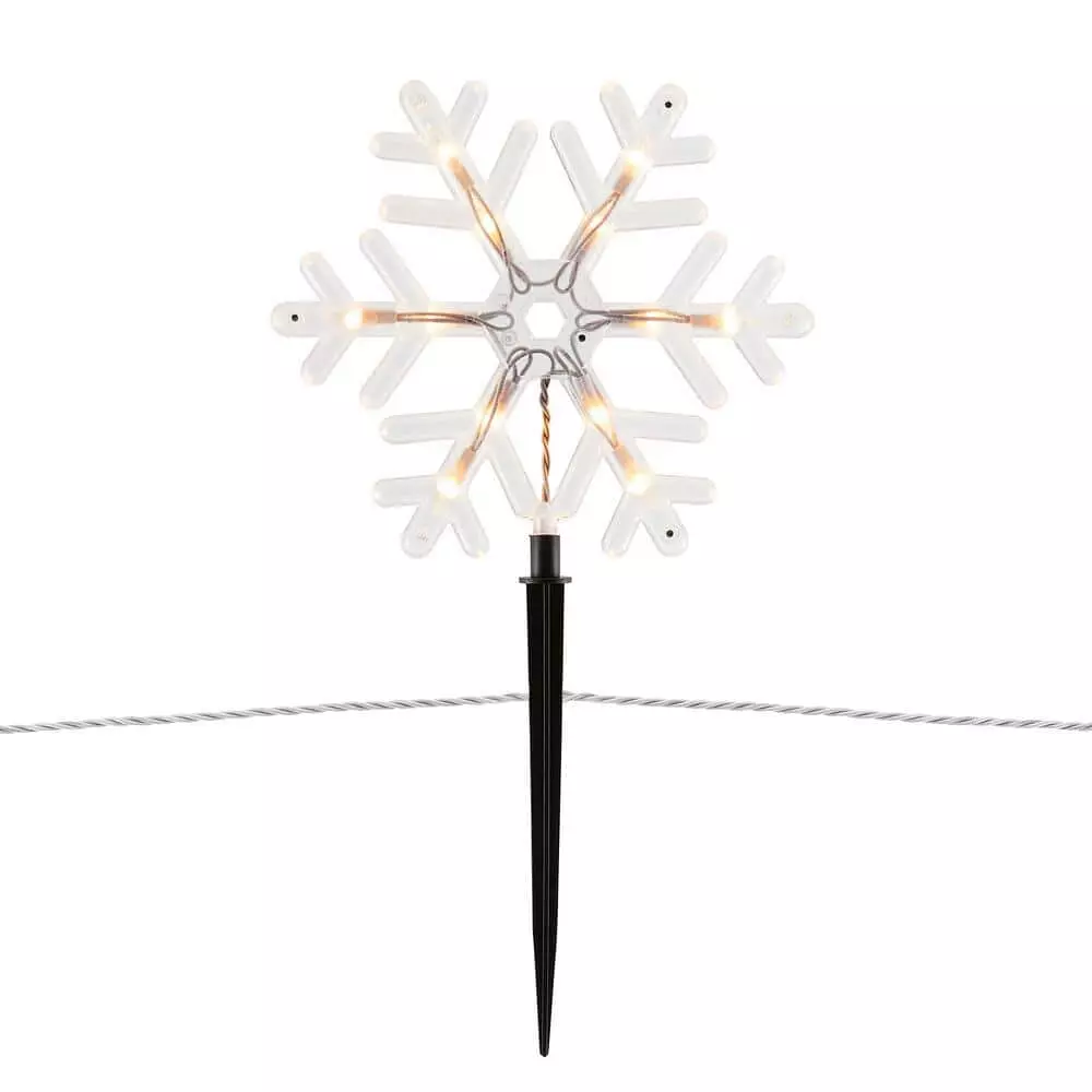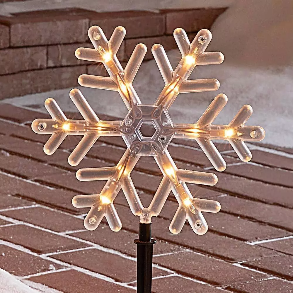Liven up your landscape with this set of four snowflake pathway lights. The glimmering incandescent bulbs give off a luminous glow, greeting your beloved friends and family with shimmering warmth and joy, while the easy-to-install design offers quick placement around your home from your front lawn to your backyard. Including four lights, spare bulbs and fuses, this set of snowflake pathway lights lets you effortlessly set up a wintry welcome to hail the holidays and your guests throughout the season.