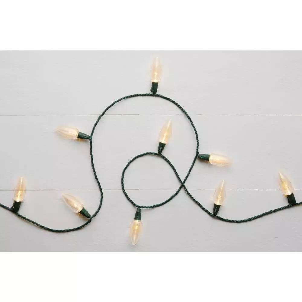Deck your holiday halls with this 100-light transparent warm white C9 LED light string. 100 energy efficient LEDs remain cool to the touch and cast a warm radiance that welcomes the winter and your visitors, while the versatile design supports a range of decorating options inside and outside your home. Boasting a generous length, this 100-light transparent warm white C9 LED light string lets you brighten up your balcony, mantel or staircase with a gorgeous luminous glow.
