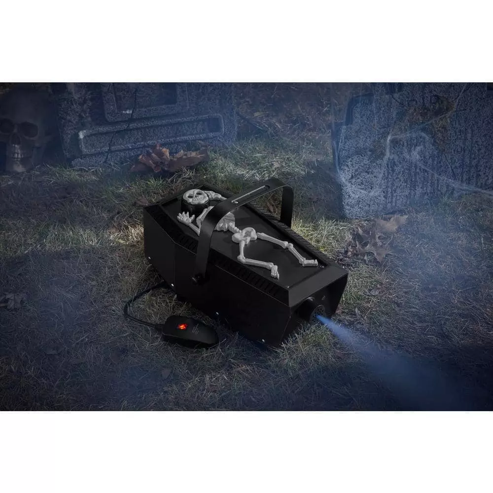 Bring a thick, unearthly air to your door with this Coffin Selection fog machine. The skeleton design blends with the rest of your demonic decor, and the 1,000W motor offers powerful performance to keep the fog rolling across your porch and into the dark night. A wired switch makes it easy to control the murky vapor. This Coffin Selection fog machine works best with Home Depot fog liquid (Sold Separately) to add just the right amount of harrowing haze to your Halloween.
