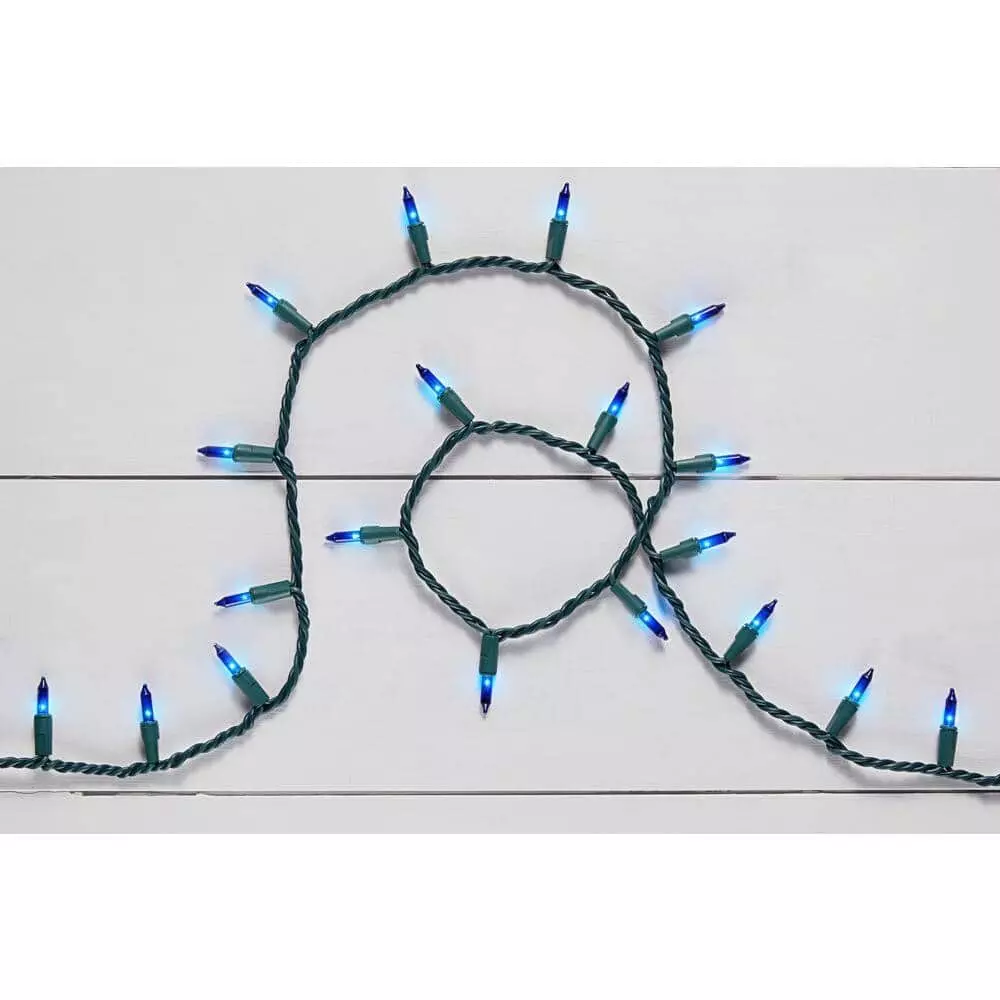 Create a festive wonderland display with these 100 mini incandescent blue lights. The green 22-gauge wire offers durability and blends seamlessly with trees for uniformity, while connectivity with up to five other sets lets you illuminate bushes and fences to bring cheer and charm to your space. These 100 mini incandescent blue lights stay on even if a bulb burns out for reliability, and the included spare bulbs and a fuse allow quick replacement of damaged parts.