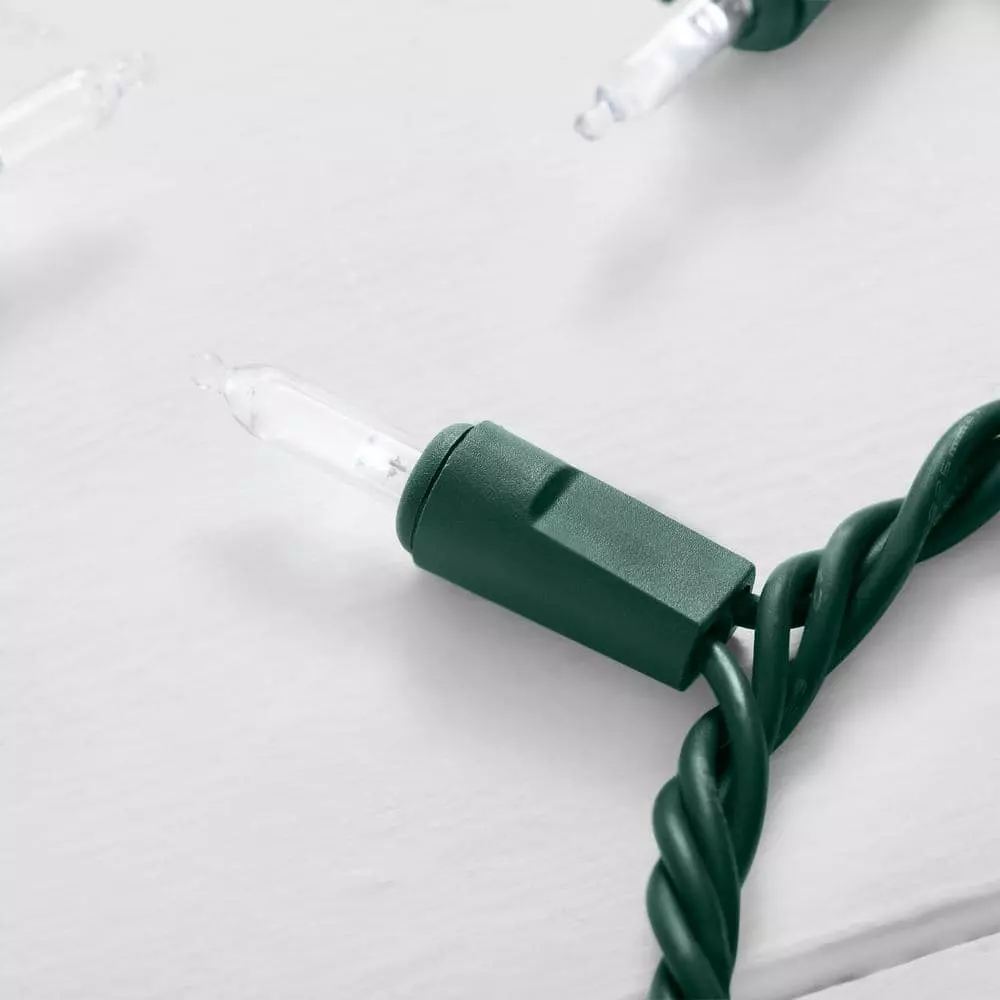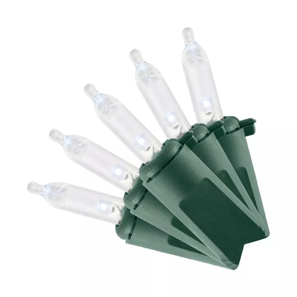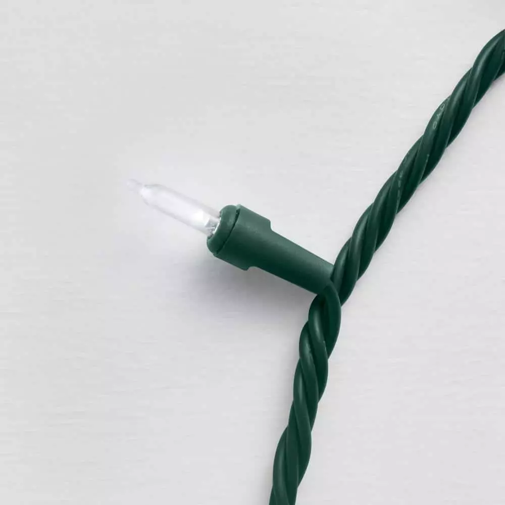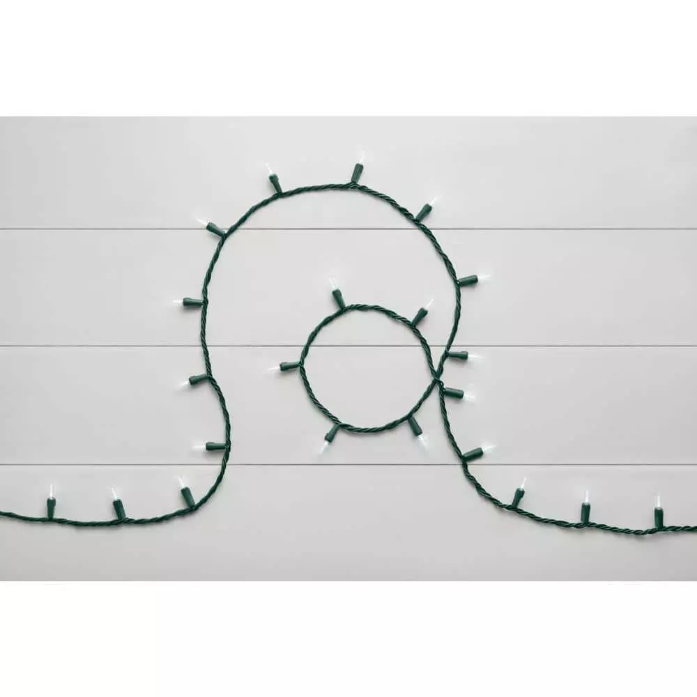 Add life to your holiday gatherings with these 100 super-bright mini LED white lights. The durable construction stands up to both indoor and outdoor use for versatility, while the bright energy-saving LEDs stay cool to the touch when lit for enhanced safety. String them along your balcony or enhance your Christmas wreath with brilliant, sparkling illumination that stands the test of yearly use. These super-bright mini LED white lights feature a green string that blends easily with Christmas trees and bushes for a seamless appearance.