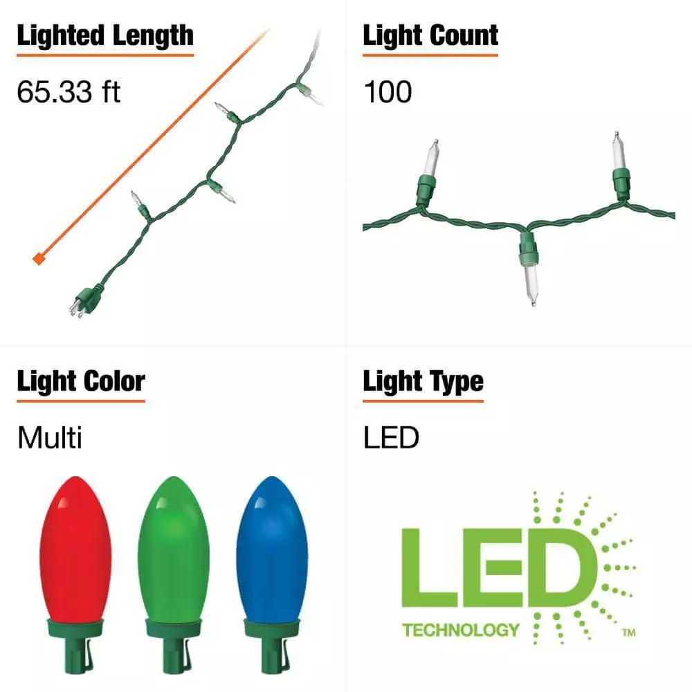 Get into the holiday spirit with these two C9 LED multi-spool light sets. Consisting of 50 bulbs each, the LED strands deliver super-bright illumination to ramp up a dazzling Christmas setup. The green wire meshes well with your tree’s verdant foliage and offers break-resistant longevity, while the energy-efficient LEDs support a worry-free holiday. Compatibility with same type LED strands let you connect up to 45 light strings in one power outlet. Suitable for both indoor and outdoor spaces, these C9 LED multi-spool light sets offer a variety of decorating options.