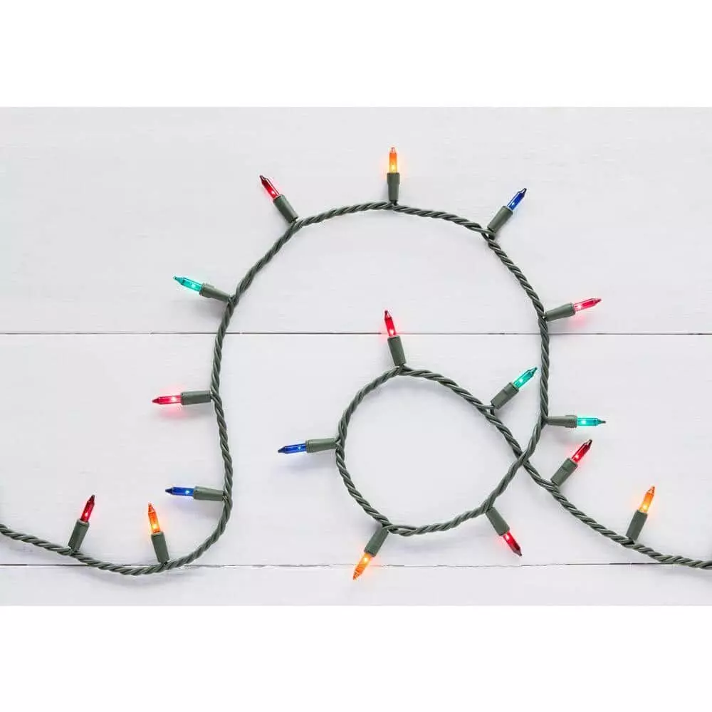 Light up your Christmas Eve with this 100-light multicolor mini incandescent light string. Sparkling light in a range of brilliant colors illuminates your tree or home, bringing warm holiday cheer to your yuletide gatherings. The 22-foot green string is easy to hide among the branches of your tree, and the 20.6 feet of light coverage ensures there are no bare spots. With extra bulbs and fuses included, this multicolor mini incandescent light string offers years of use in your holiday decorating.