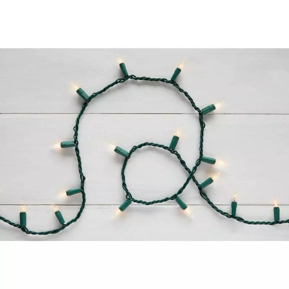 Welcome the holiday season with the bright glimmer of this Home Accents Holiday mini twinkle light set. The 22 AWG wire is sturdy enough to handle outdoor use, and the 37.25-foot lighted length lets you easily illuminate rooflines, hedges and porches with a festive glow. Compatibility with up to two other light sets helps you extend the lighting coverage on a single outlet. This Home Accents Holiday mini twinkle light set features 150 Clear mini lights for dazzling cheer, while every fifth bulb sparkles to showcase a captivating display.