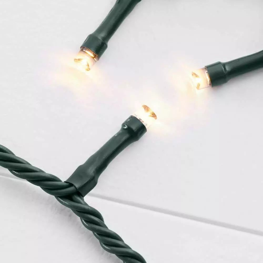 Spread brightness and cheer in your home with this 43.5-foot micro fairy LED light string. Warm white lights deliver continuous illumination all season long, while the sturdy construction supports indoor and outdoor use. An ample lighted length lets you decorate the way you want, and the seamless connectivity with up to two extra sets (not included) makes it easy to cover your favorite spots with festive brilliance. This micro fairy LED light string easily plugs into a standard outlet to for added convenience.
