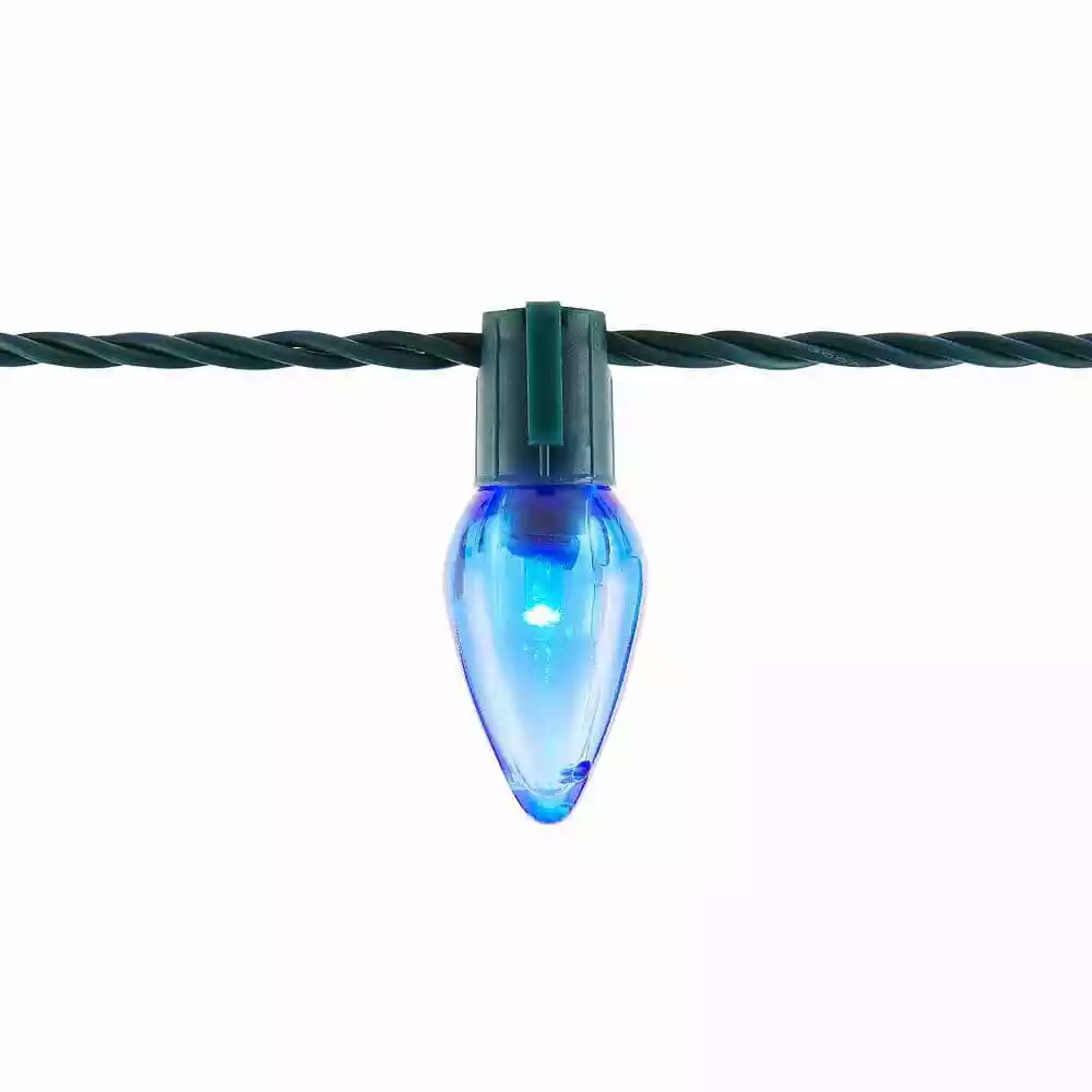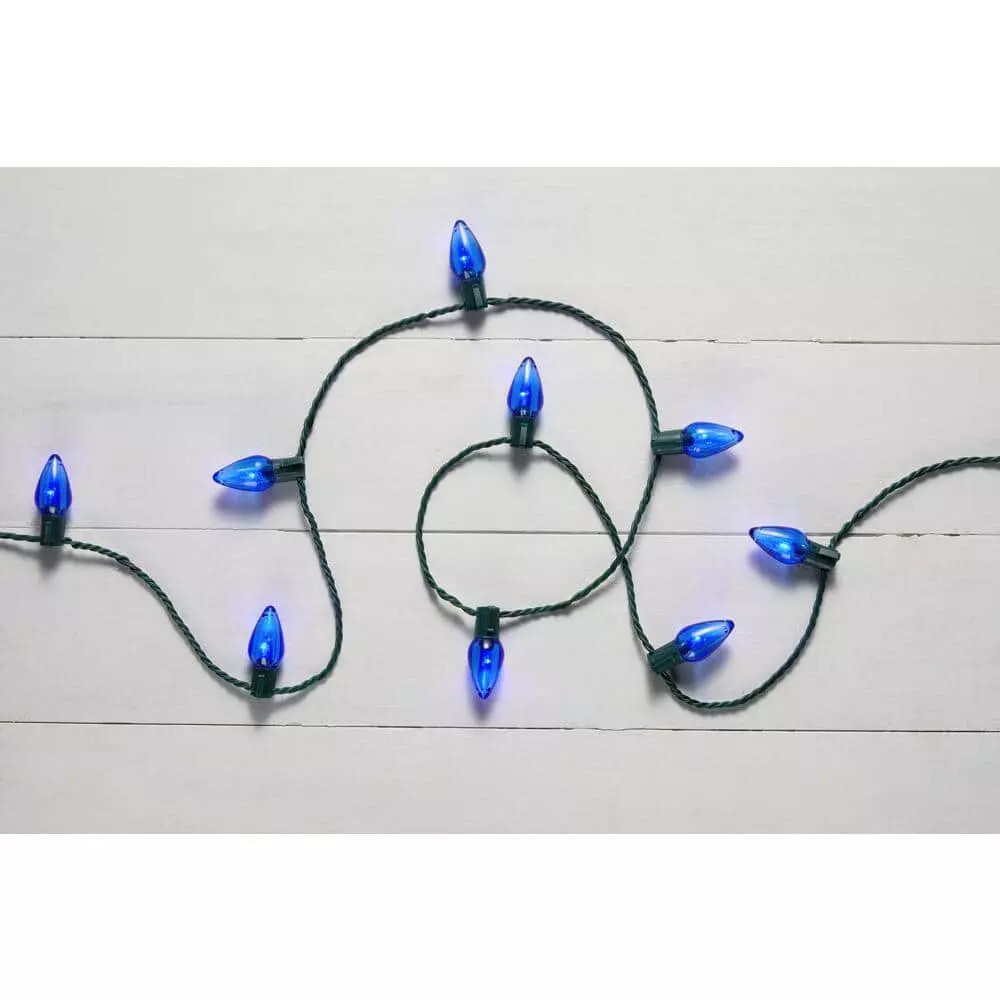 Bring a cool, wintry flair to your lawn’s or living room’s holiday decor with this blue C9 LED light string. The 25 C9 LED bulbs brightly illuminate your festive scene, and the sturdy design allows safe, reliable placement in outdoor spaces. Each LED remains cool to the touch when lit and provides energy-efficient illumination for season-long cheer. This blue C9 LED light string links up with up to 50 other C9 LED sets, letting you easily lighten up eaves, fences and hedges with a stunning, arctic hue.