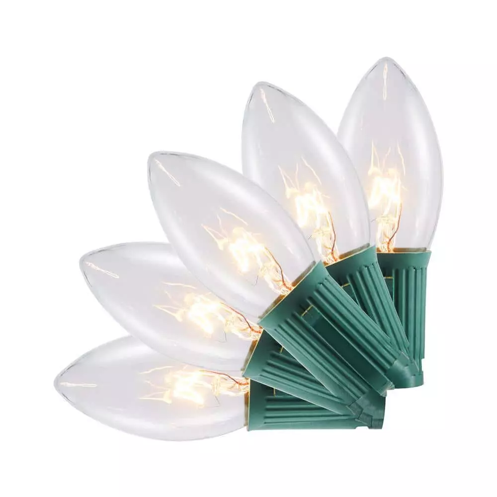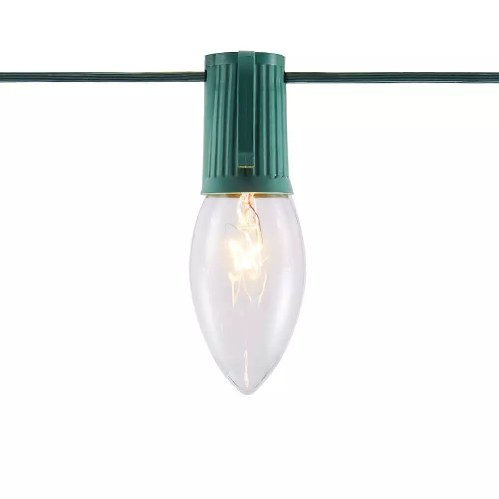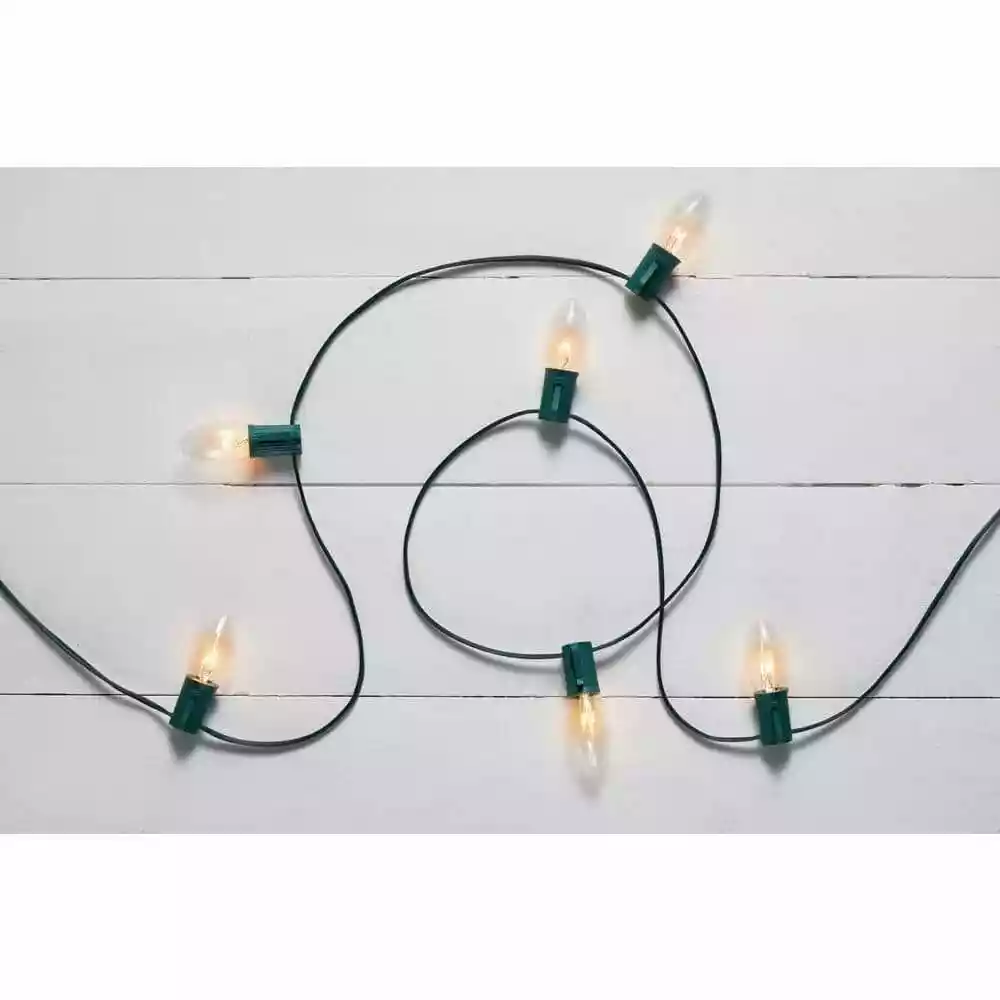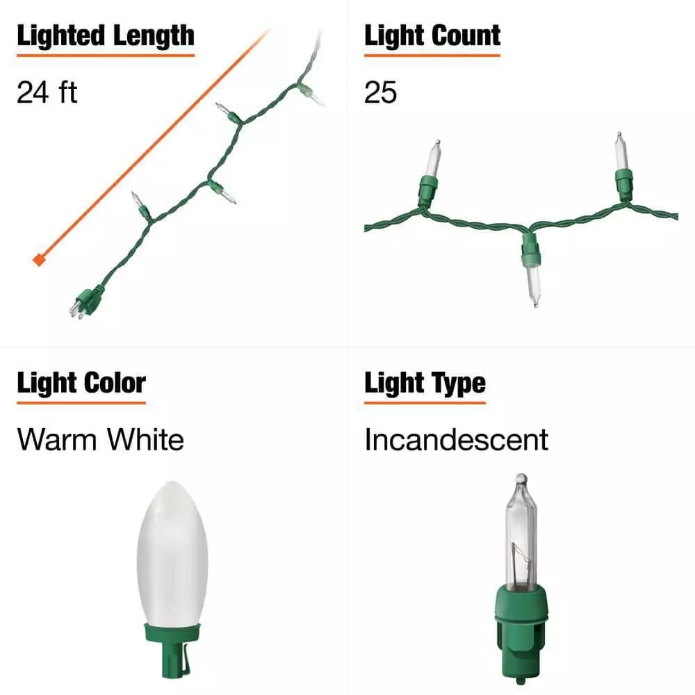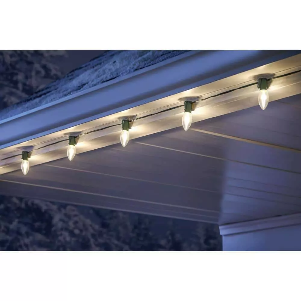Wrap your home’s front entrance in festive illumination with this 25-light incandescent light string. The C9 bulbs deliver vintage-inspired style, recalling favorite Christmases past. A brilliant white color lights the night to beckon friends and family for a visit, and the 24-foot length makes it easy to adorn your porch or picture window. These lights remain lit even if a single bulb goes out. With a simple design, this 25-light incandescent light string connects to another set on one outlet (not included) for full coverage of your winter wonderland.