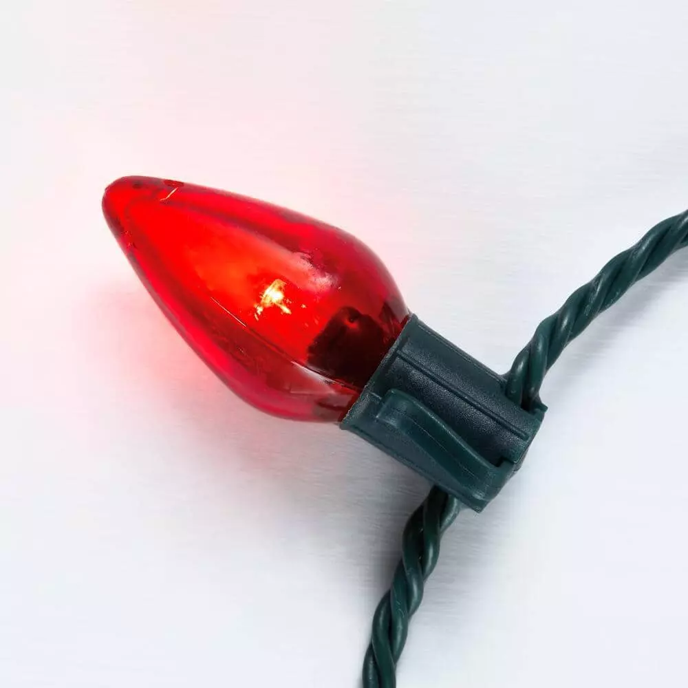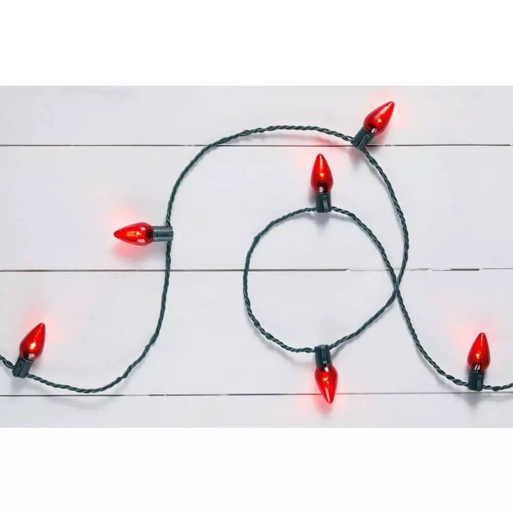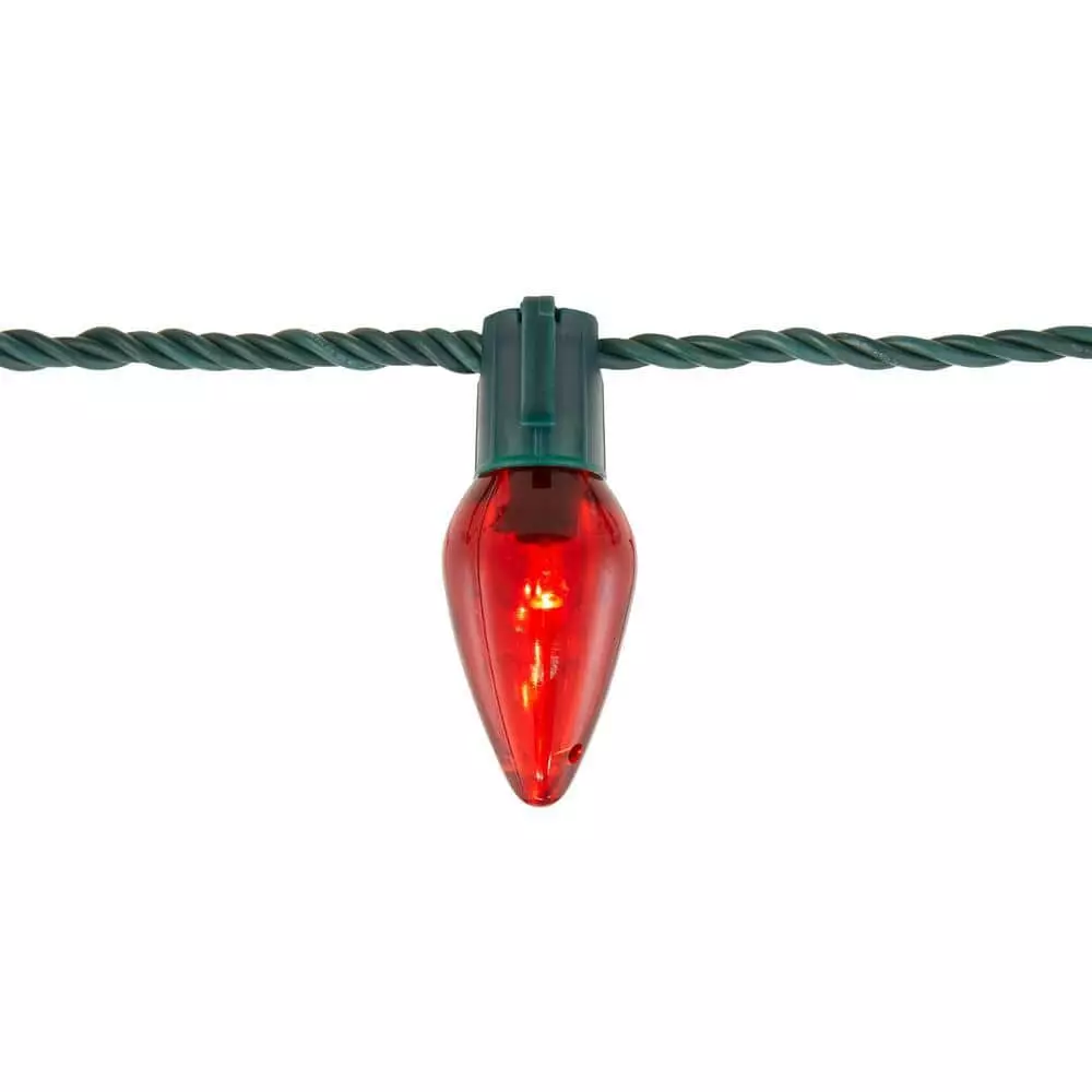 Adorn the inside of your home or your fence with this C9 LED red light string. The lead-in and lead-out cord offer flexible placement, while the energy-efficient bulbs offer lasting illumination. A total of 25 C9 LEDs stay cool to the touch throughout your seasonal celebrations and offer a red glow for a classic Christmas look. This C9 LED red light string has an ample length for creative decorating and links with up to 50 additional sets to create an expanded backdrop.