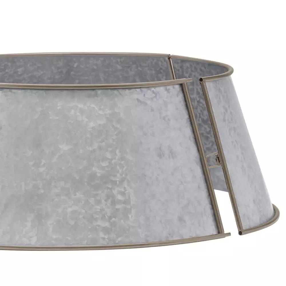 Give your tree a streamlined look when you add this galvanized metal Christmas tree collar. The simple design conceals your tree stand for a seamless appearance, while the durable construction delivers reliable use season after season. This tree collar comes in four pieces for hassle-free installation and setup, and the surface is easy to clean, resisting spills and messes for enduring good looks. Compatibility with trees of all sizes makes this galvanized metal Christmas tree collar a beautiful and lasting addition to your holiday tableau.