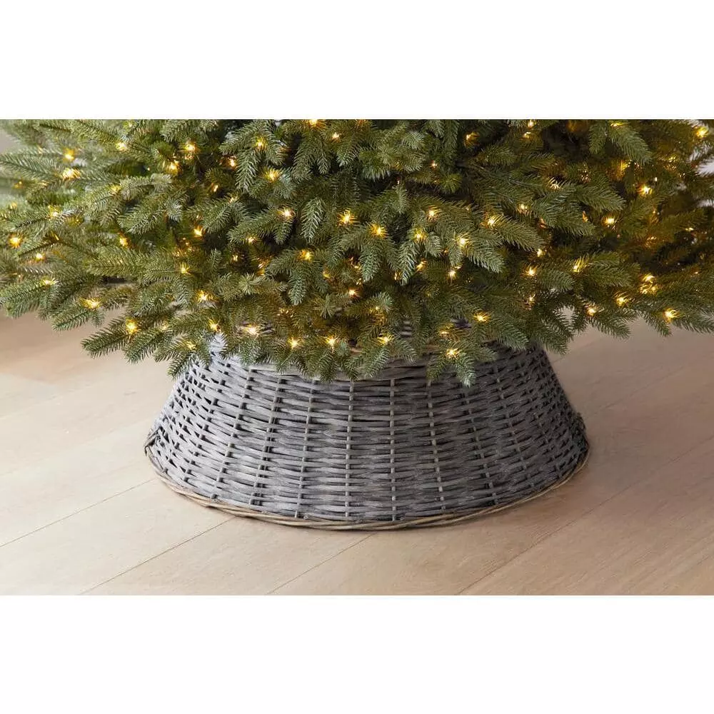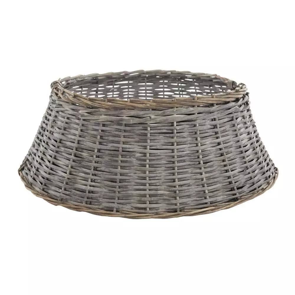 - Includes two-piece brown rattan wicker Christmas tree collar