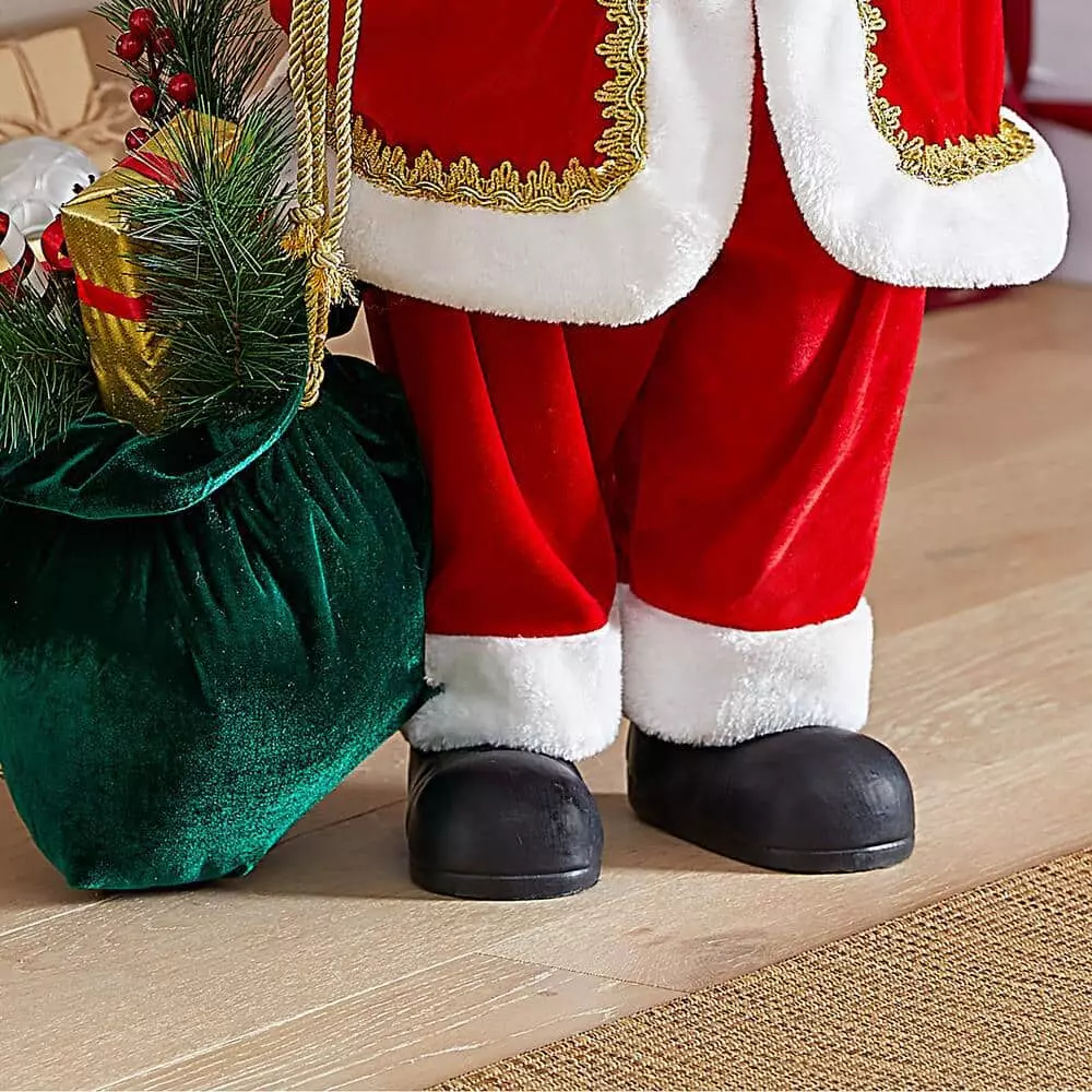Add a touch of holiday magic to your home with this Christmas Santa figure. The jolly gift giver stands ready to delight with his bag of goodies and an adorable bear, and the 3-foot height makes this seasonal accent perfect for placement next to your tree or fireplace. Hand-painted details offer a classic look, while the simple setup requires no assembly for hassle-free decorating. With a traditional design, this Christmas Santa figure makes it easy to transform your living room into a darling North Pole scene.