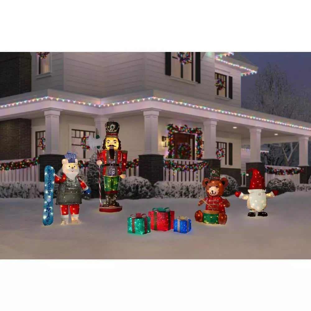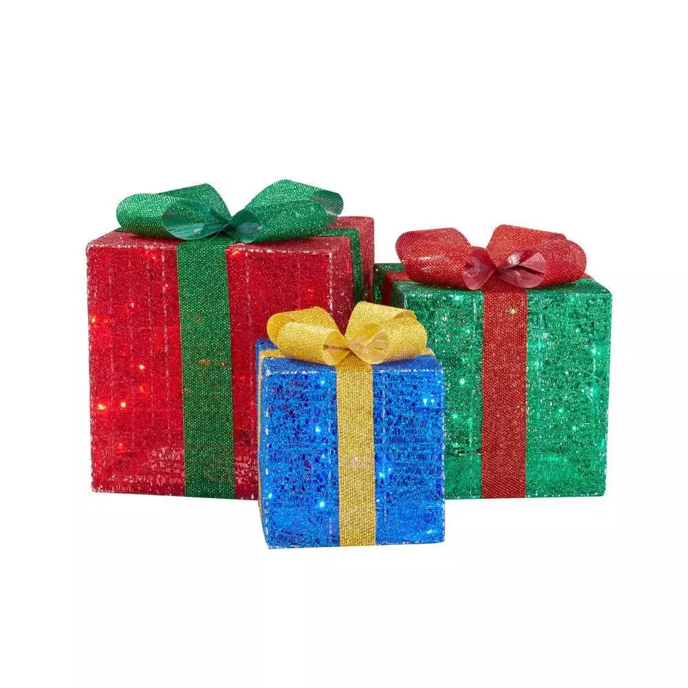 Put the perfect finishing touch on your outdoor holiday display with this set of three gift yard sculptures. Pretty presents in three different sizes let you create a custom scene, and the thoughtful sizing provides an ideal complement to trees, nutcrackers and other decorating essentials. Energy-efficient LEDs brighten your lawn for a merry look, while metal frames and weather-resistant fabric ensure lasting use. Featuring included ground stakes, these gift yard sculptures are easy to set up.