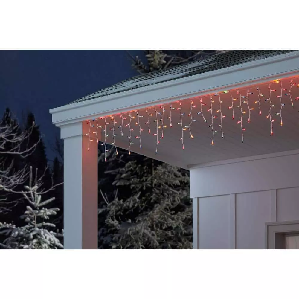 Illuminate the Christmas season by decorating your space with these Home Accents Holiday multicolor icicle lights. The lights stay lit even when one burns out to keep your celebrations going, while spare bulbs and fuses allow effortless replacement. A generous length holds 300 multicolor LEDs to bring a festive look, and the indoor and outdoor rating offers versatile setup and display. These Home Accents Holiday multicolor icicle lights work with up to two sets to adorn your roofline or patio ceiling.