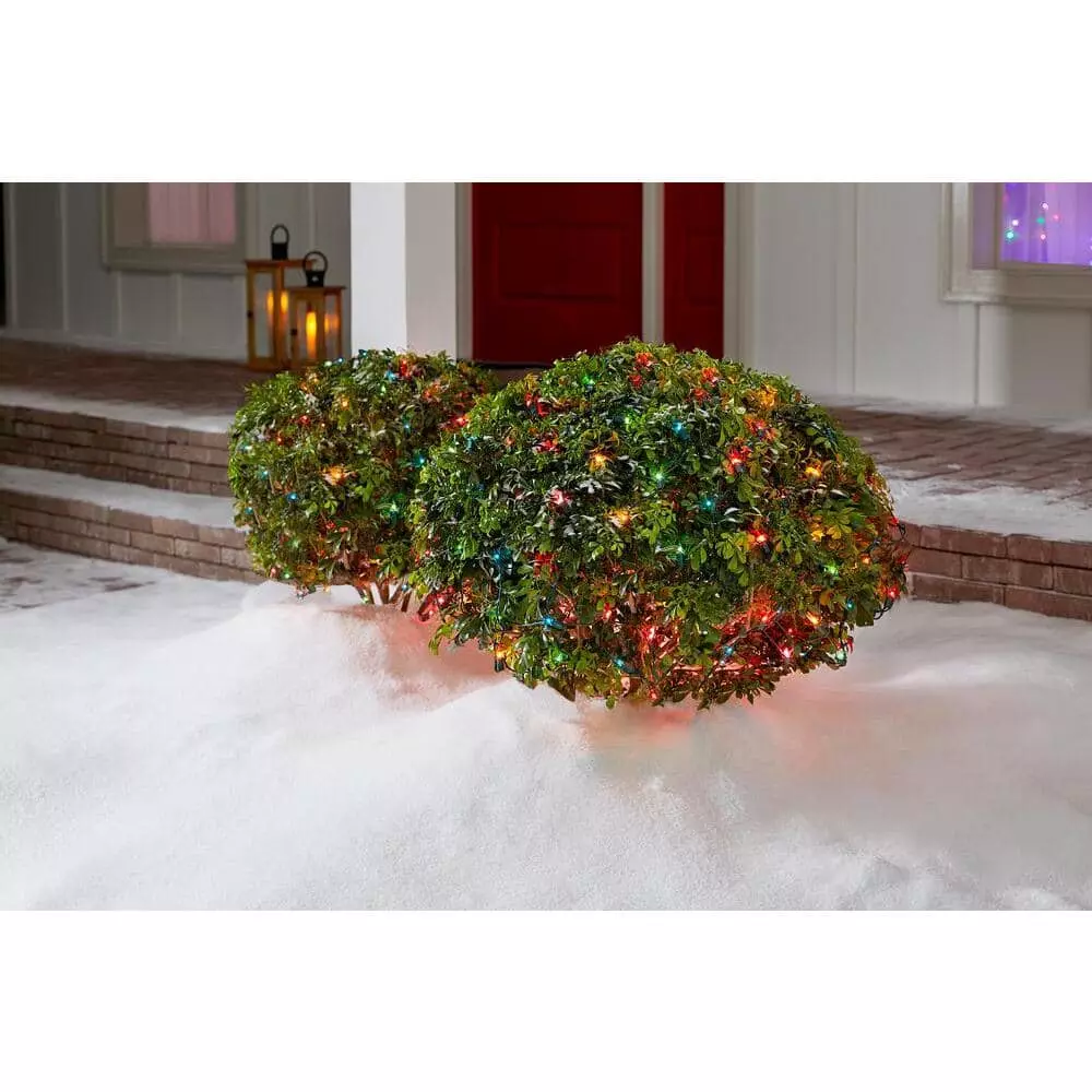 Give a spirited, lively touch to your bushes and hedges with these Home Accents Holiday multicolor net lights. The warm glow of 300 vibrantly colored mini lights spreads festive cheer in your front yard, and the green wire blends with foliage to present a seamless display. Even if a bulb burns out, the lights keep on shining throughout the holiday season. These Home Accents Holiday multicolor net lights can link up with up to two other sets to cover fences and small trees with jubilant illumination.