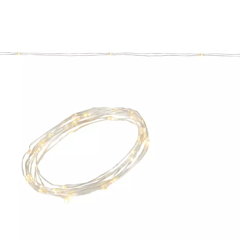 Keep the lights bright for Santa with this warm white dot ultra-slim LED set. The radiant 9-foot strand of 36 dot lights is perfect for decorating your tree, wreath or garland, while efficient LED technology promotes a safe holiday. Get hassle-free operation and portability from this battery-operated light string. The range of lighting modes let you choose between steady, flashing and fading effects to enhance a vibrant holiday decor. Featuring a thin silver wire, this warm white dot ultra-slim LED set meshes well with a festive Christmas palette.