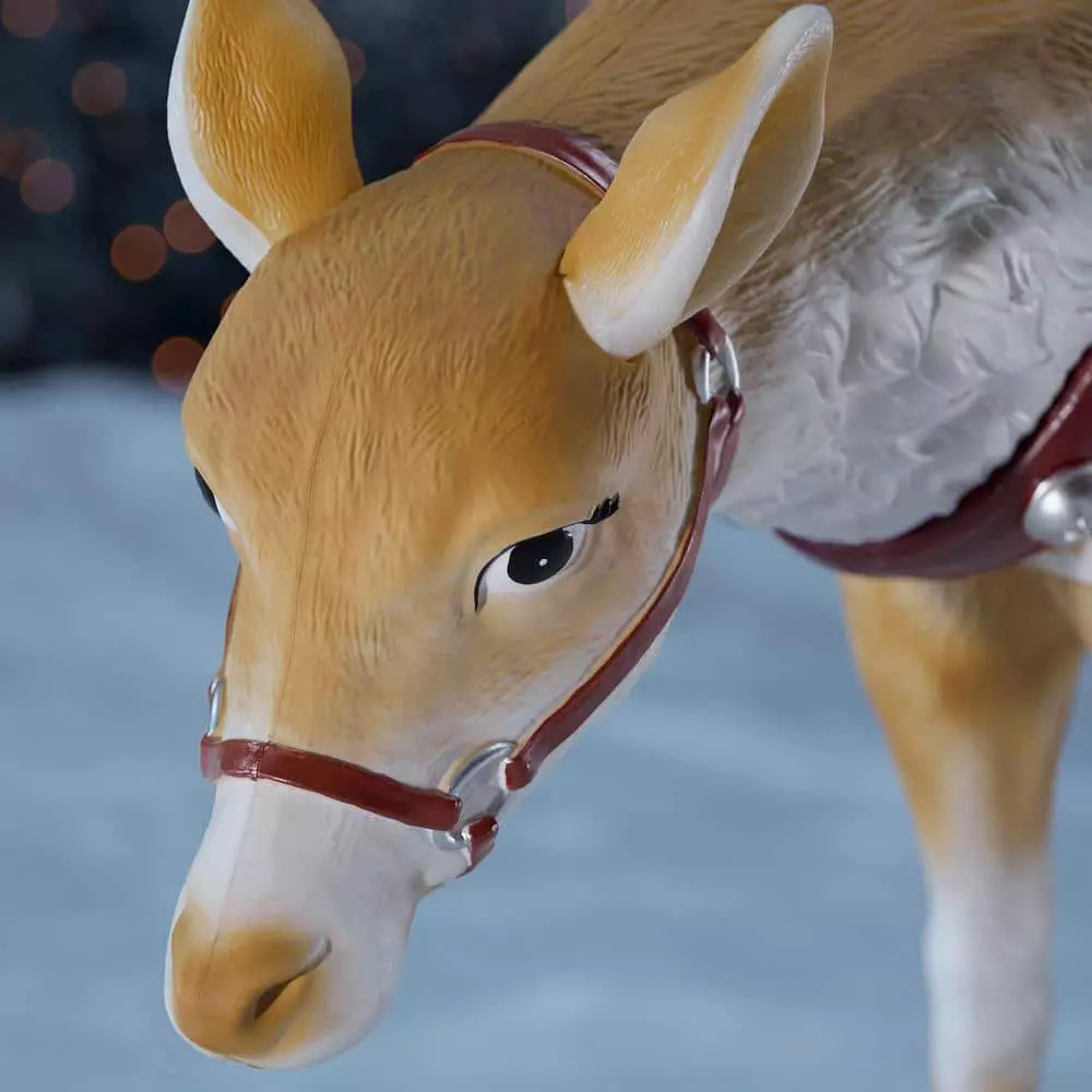 Build a charming woodland scene for the holidays with this feeding reindeer lawn sculpture. The hand-painted design creates a unique piece to grace your porch or patio, while the sturdy molded plastic construction can handle the winter winds. Sparkling LEDs illuminate this darling doe, hailing the holiday and welcoming guests and neighbors to your home. Featuring an included adapter, this feeding reindeer lawn sculpture sets up easily with a standard outlet, letting you decorate for Christmas indoors or out.