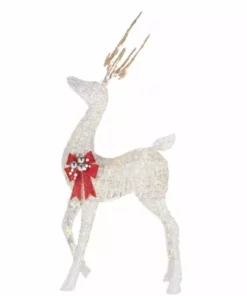 Add wondrous woodland appeal to your seasonal setup with this Polar Wishes deer with bow yard sculpture. The metal and PVC wrap construction easily handles snow and wind, delivering a brilliant accent to your home for the holidays. A beautiful bow adds the perfect finishing touch to this graceful forest creature. Light up your lawn to warmly welcome guests with 105 white LEDs. Place this Polar Wishes deer with bow yard sculpture indoors or out to bring a little sophistication to your Christmas decor.