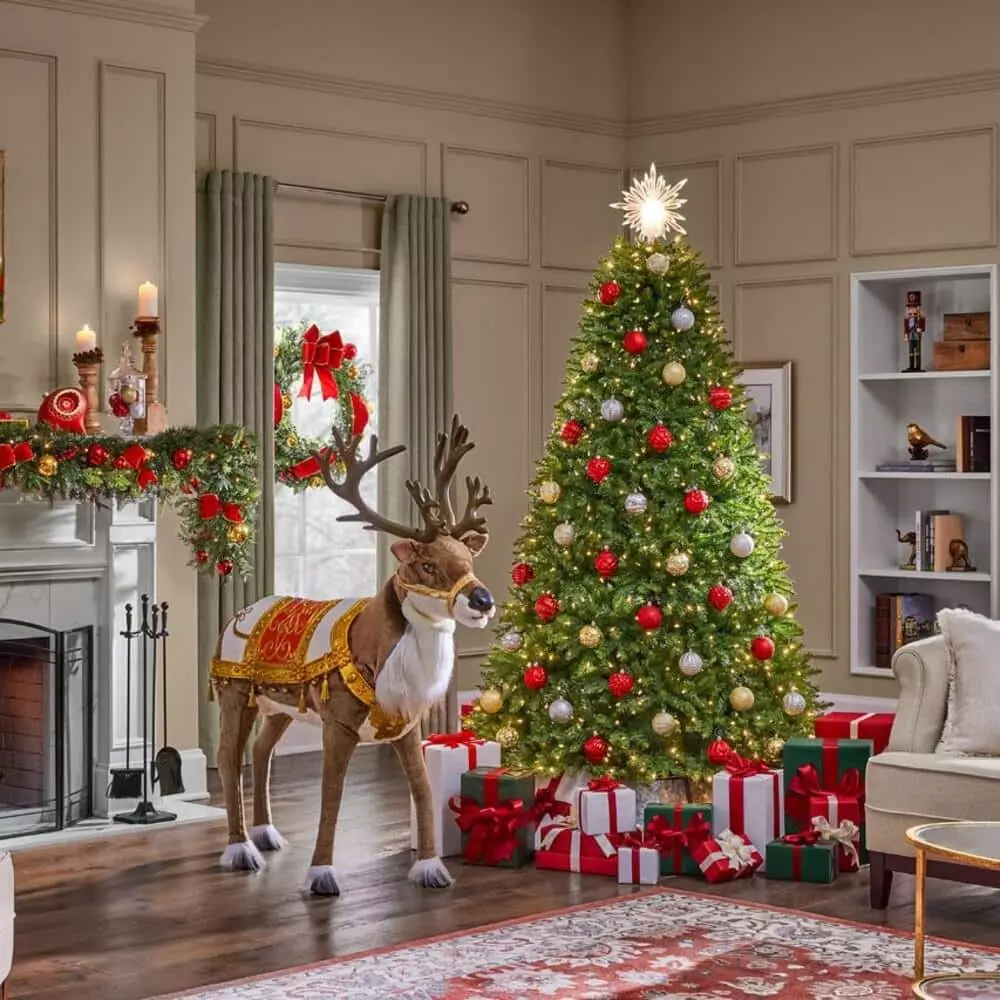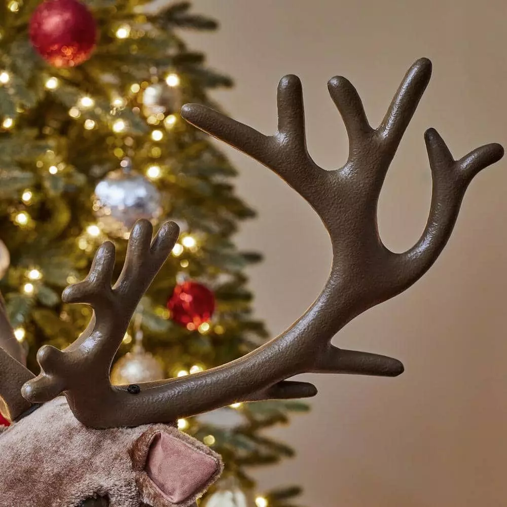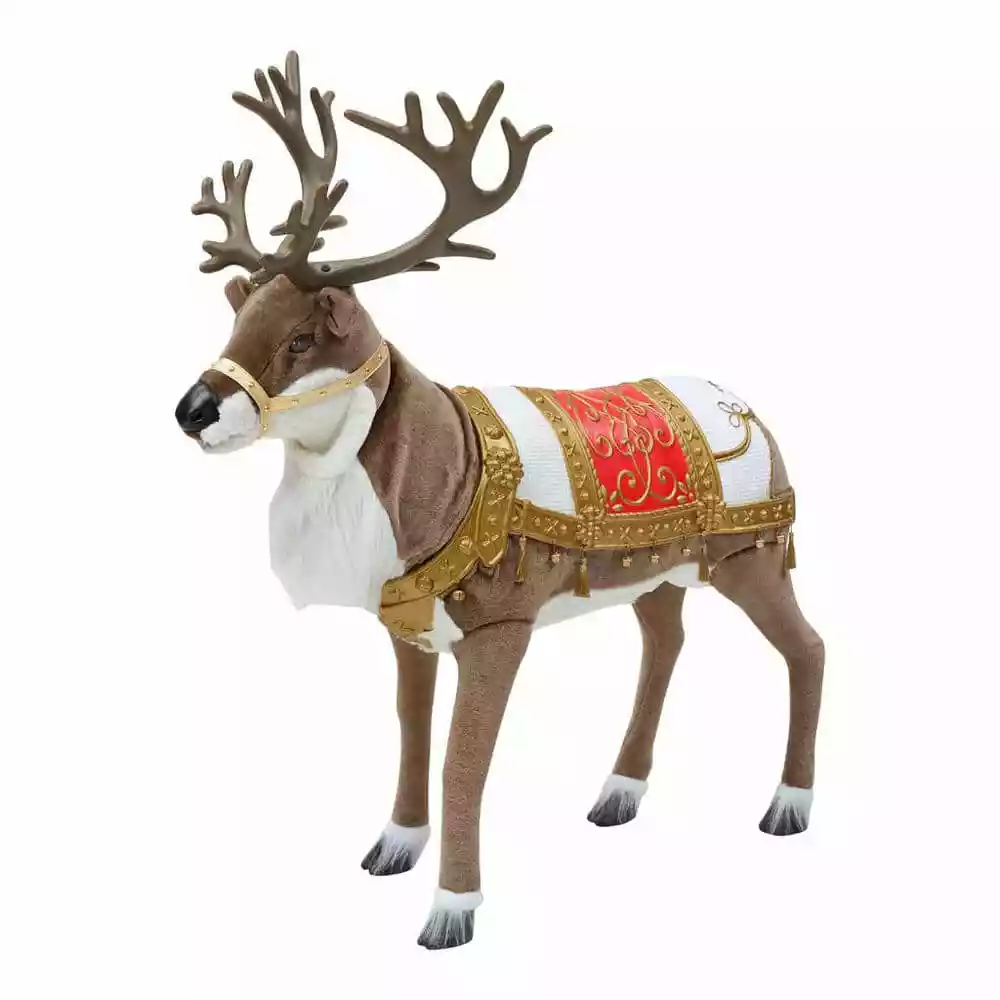 Celebrate an enchanting holiday season with this 50-inch animated reindeer. The woodland creature moves its head from side to side to the tune of a festive Christmas song, entertaining your guests and filling your home with cheer and delight. A tough polypropylene construction offers durability, while lifelike antlers and plush fur boast realistic details to elevate your holiday display. Measuring 50 inches high, this life-size animated reindeer helps transform your living room into a Christmas wonderland.