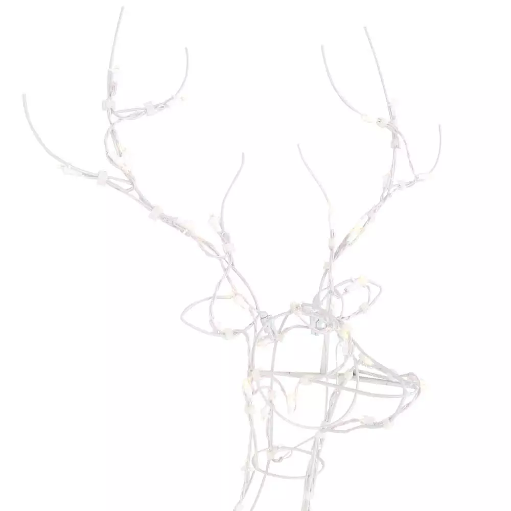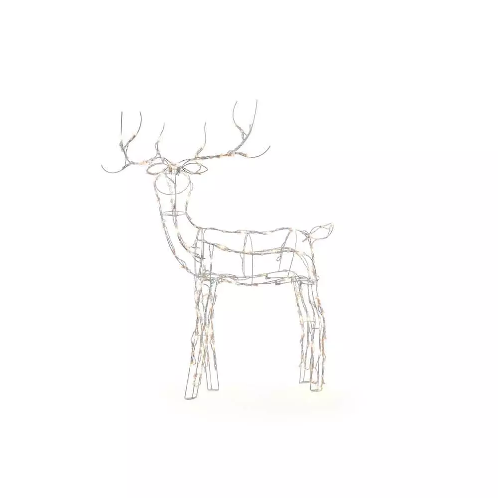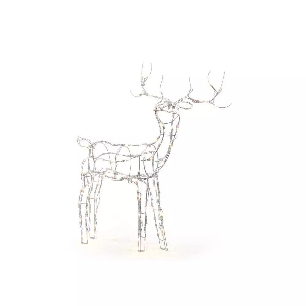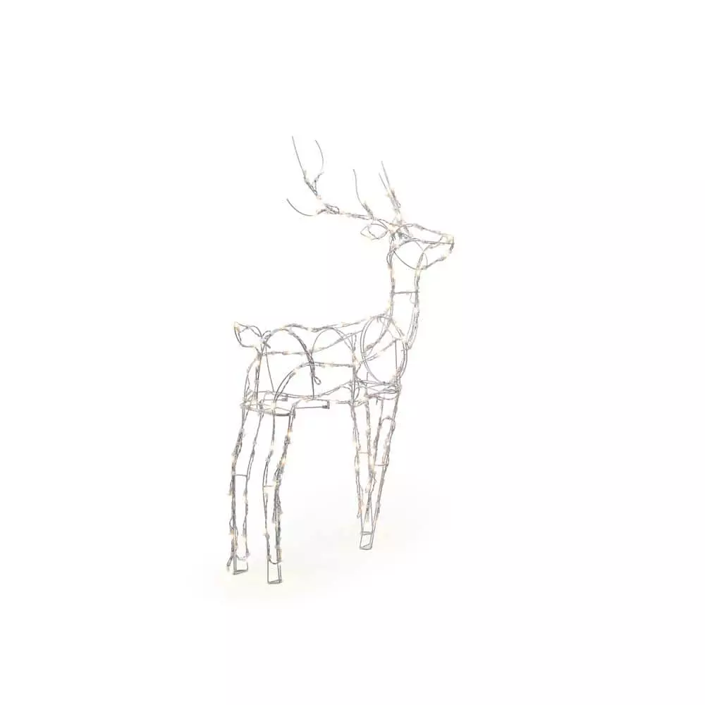 Indulge in the holiday spirit by decorating your lawn with this Home Accents Holiday wire reindeer yard sculpture. The 120 LEDs cast a bright glow throughout your festive nights and remain cool to the touch for safe use. A metal wire frame creates a focal point in your front yard, while the included stakes allow for easy setup. This Home Accents Holiday wire reindeer yard sculpture stands 4 feet tall to greet your guests and neighbors all season long.