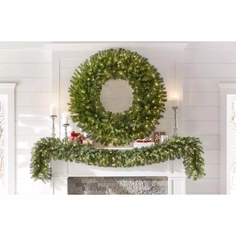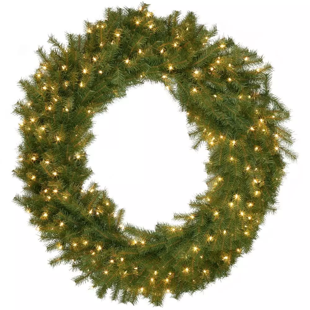 Bring in the holiday season with this 48 in. Prelit Norwood Fir Wreath. It comes with 200 white lights that will give your space a beautiful shine. Add this kind of detail to make your home ready for holiday pictures.