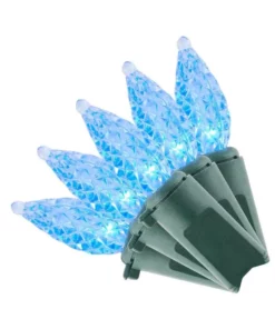 Illuminate poles and rooflines for Christmas celebrations with these 50 blue super-bright C3 LEDs. The faceted design and connectivity with up to 25 sets of light strings offer wide coverage, letting you light up fences and trees, while the durable construction allows both indoor and outdoor use. LEDs stay cool for efficient energy and safe merriment. These 50 blue super-bright C3 LEDs feature Steady Lit -technology, which keeps other bulbs lit even when one burns out or gets damaged
