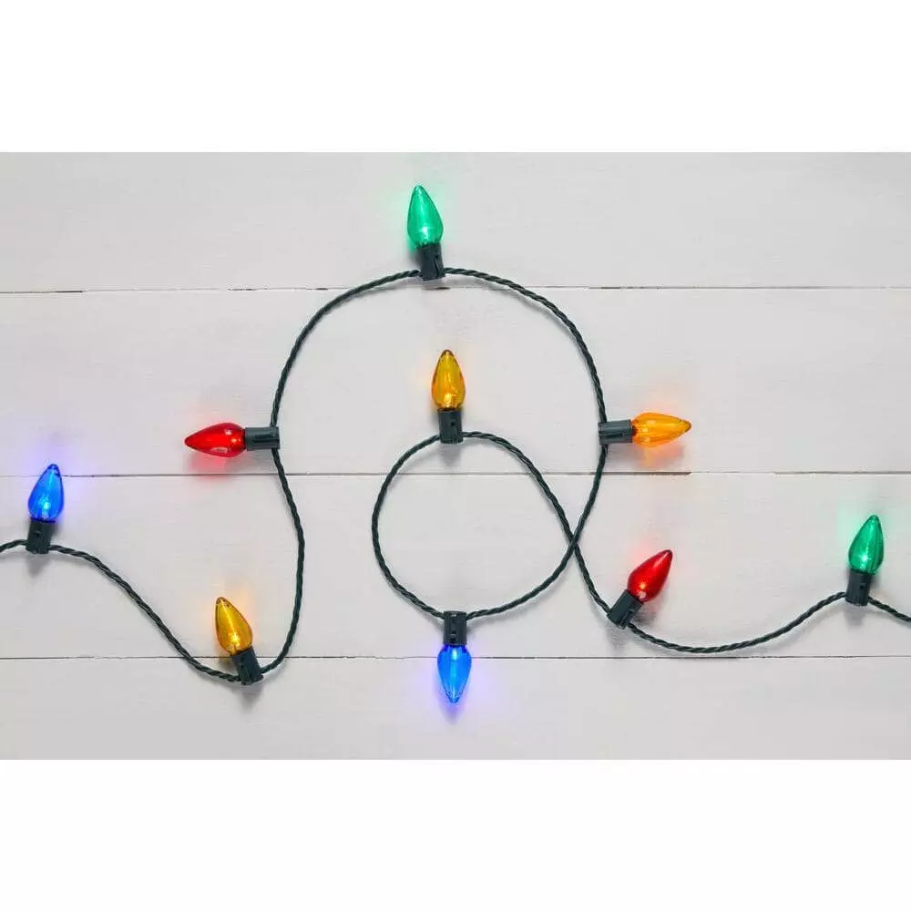 Give your home a warm and inviting appearance with this 50-light multicolor LED C9 light string. The bright energy efficient bulbs remain cool and offer shimmering radiance throughout the season, while the brilliant colors adorn your windows, walls or railings with fun and festive hues. Boasting 32.66 feet of lighted length, this 50-light multicolor LED C9 light string lets you connect up to 51 sets to create a cozy glow to welcome the winter.