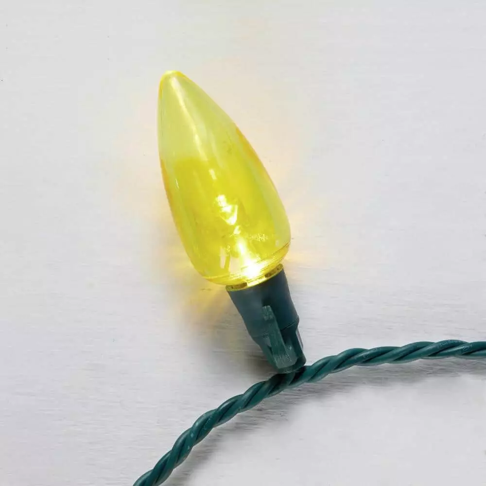 Celebrate the most wonderful time of the year with this 32.6-foot C9 LED ultra-bright transparent warm white Christmas light set. The 50 bulbs deliver warm white lighting to complement your sparkly holiday decor, while the flicker-free, continuous-on technology fosters a festive mood. Enjoy reliable long-lasting performance from the energy-efficient LED bulbs. Offering over 32 feet of lighted length, this C9 LED ultra-bright transparent warm white light set lets you highlight your windows, fireplace mantel or stairway rail for the holiday.
