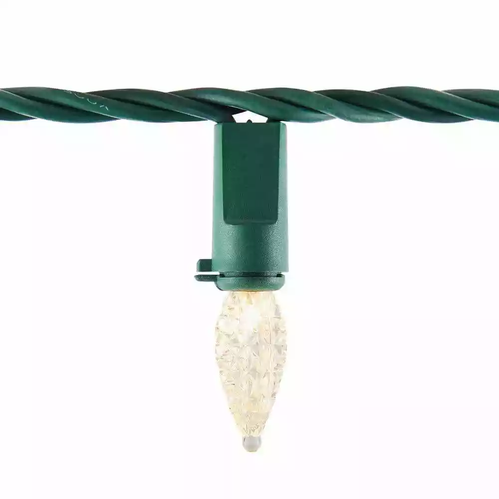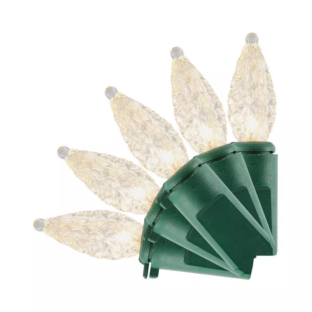 Highlight a captivating Christmas display with this 16.33-foot C3 LED warm white faceted light string. With a resistor for each bulb, these lights remain lit even if a bulb burns out, is missing and damage . The 50 warm white lights help liven up holiday festivities, while the expandable design connects with up to 24 other sets for longer reach. Featuring long-lasting LEDs, this light set maintains its brightness throughout the holiday. This C3 LED warm white faceted light string is suitable for indoor and outdoor use, offering a variety of decorating options.