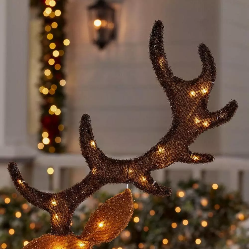 - Includes a set of three light-up leaping brown deer with extra bulbs and fuses