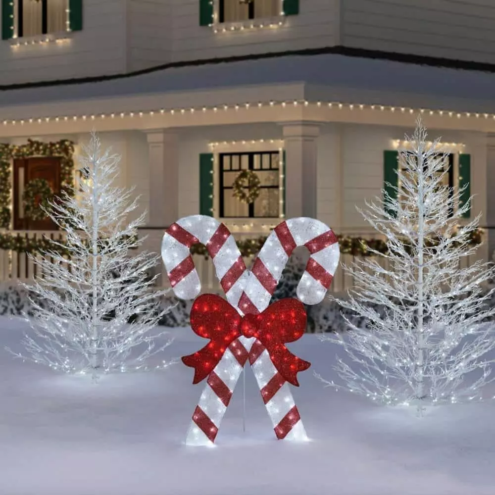Add a sweet finishing touch to your Christmas decor with this 72-inch acrylic LED candy cane. The red bow lets you incorporate classic Christmas hues and imagery, while the 175 red and white lights bring sparkle and shine to perk up your festive gatherings. Designed for indoor and outdoor use, the tough metal frame and acrylic construction hold up to changing temperatures and conditions. This acrylic LED candy cane is easy to set up and comes with extra bulbs and fuses for fuss-free replacement and continuous illumination.