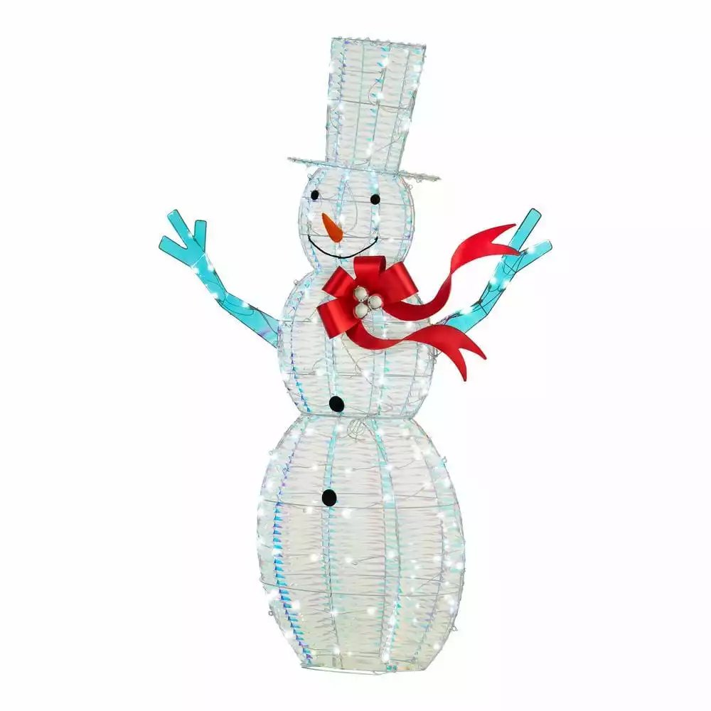 Turn your lawn into a magically merry scene with this 6-foot Christmas snowman yard sculpture. The red metallic bow gives this frosty fellow a cheerful look, and the iridescent ribbon adds a snow-kissed appearance. This lawn decoration features 90 LEDs with SPARKLE technology, shining through the night to welcome guests to family gatherings and seasonal parties. With a simple design and everything needed for assembly, this Christmas snowman yard sculpture is easy to set up and place in your holiday display.