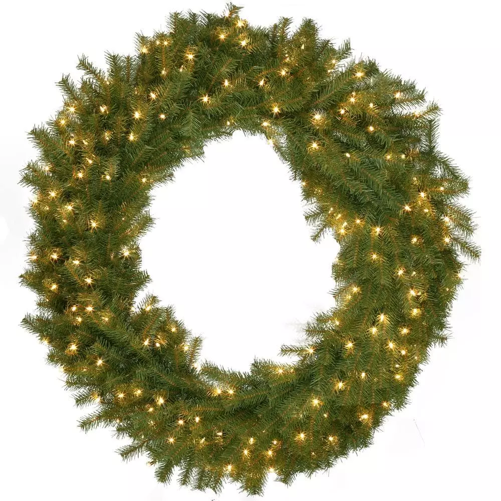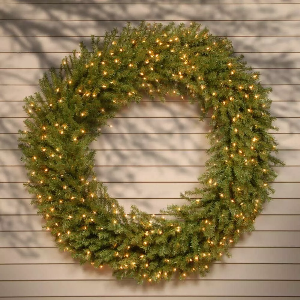 Get your space ready for the holidays with this 60 in. Prelit Norwood Fir Wreath. It features 300 clear lights to perfectly light up your space. Easily place this on your door or in your entryway to greet your guests.