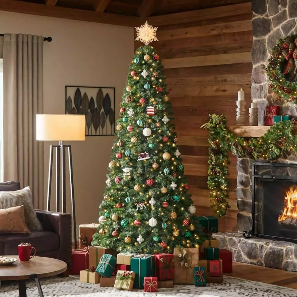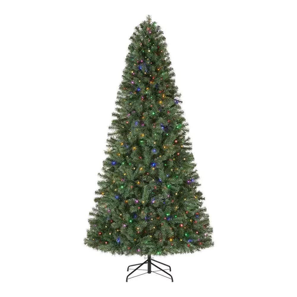 Join in on a beloved holiday tradition with this festive pine prelit artificial Christmas tree. Standing 7.5 feet high with a base diameter of 46 inches, this prelit tree creates an eye-catching centerpiece in your home, and the 1,009 tip count provides ample room for your favorite ornaments, letting everyone in your family in on the fun of decorating the tree. This festive pine prelit artificial Christmas tree features 500 color-changing LEDs to add festive sparkle and cheerful ambiance to your celebrations.