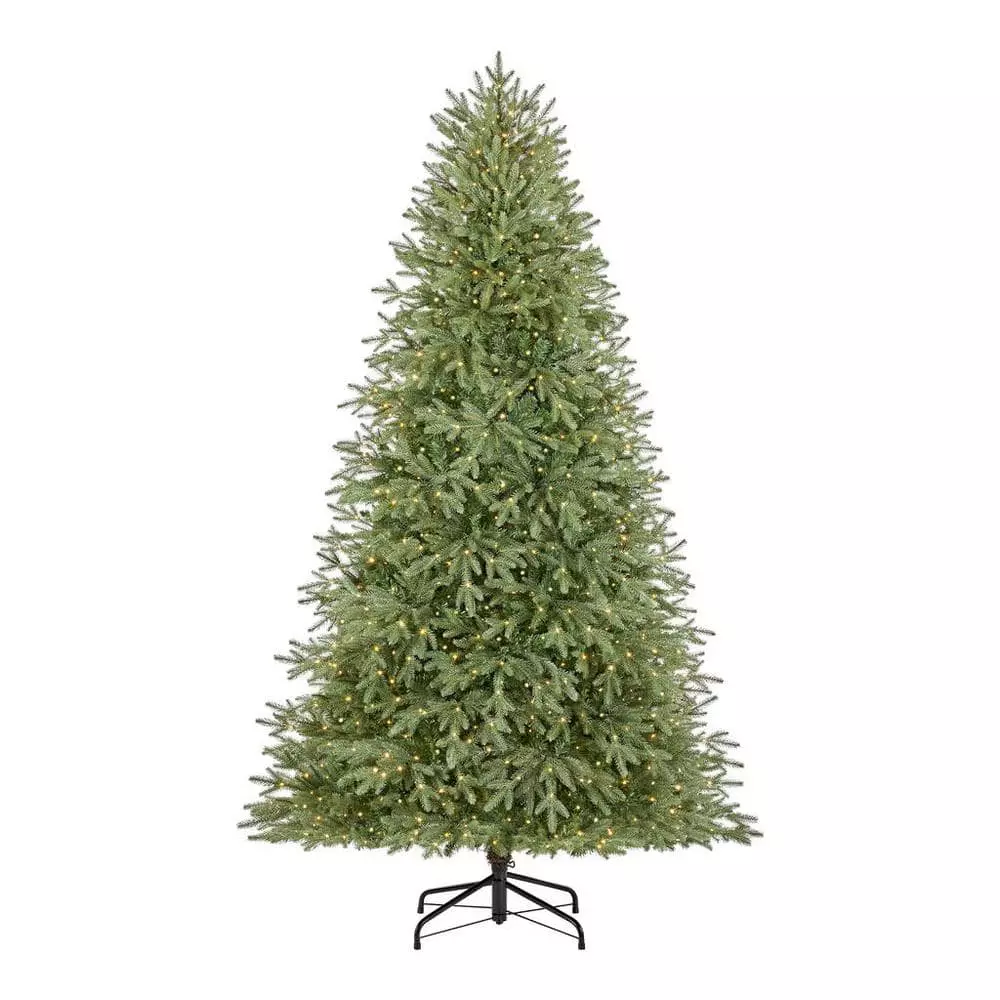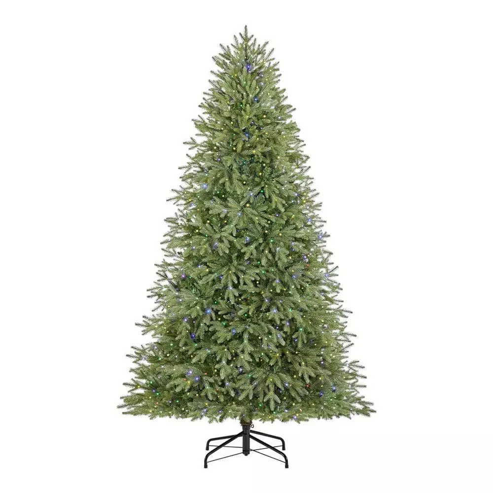 Match the splendor of your yuletide decor with this Jackson noble fir artificial Christmas tree. The majestic display showcases a beautiful pre-lit design with 1,200 color-changing LEDs, casting a multicolor glow in your living space and creating a magical atmosphere. Simply use the included remote control to select one of eight light functions to suit your home’s ambience. Featuring ultra-thin wiring with 4,072 PE and PVC branch tips, this Jackson noble fir artificial Christmas tree presents a lush, lifelike construction to create a natural woodland appearance.