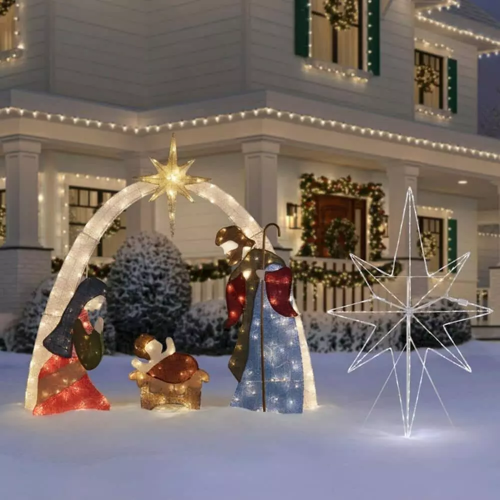 - Includes Nativity yard sculpture