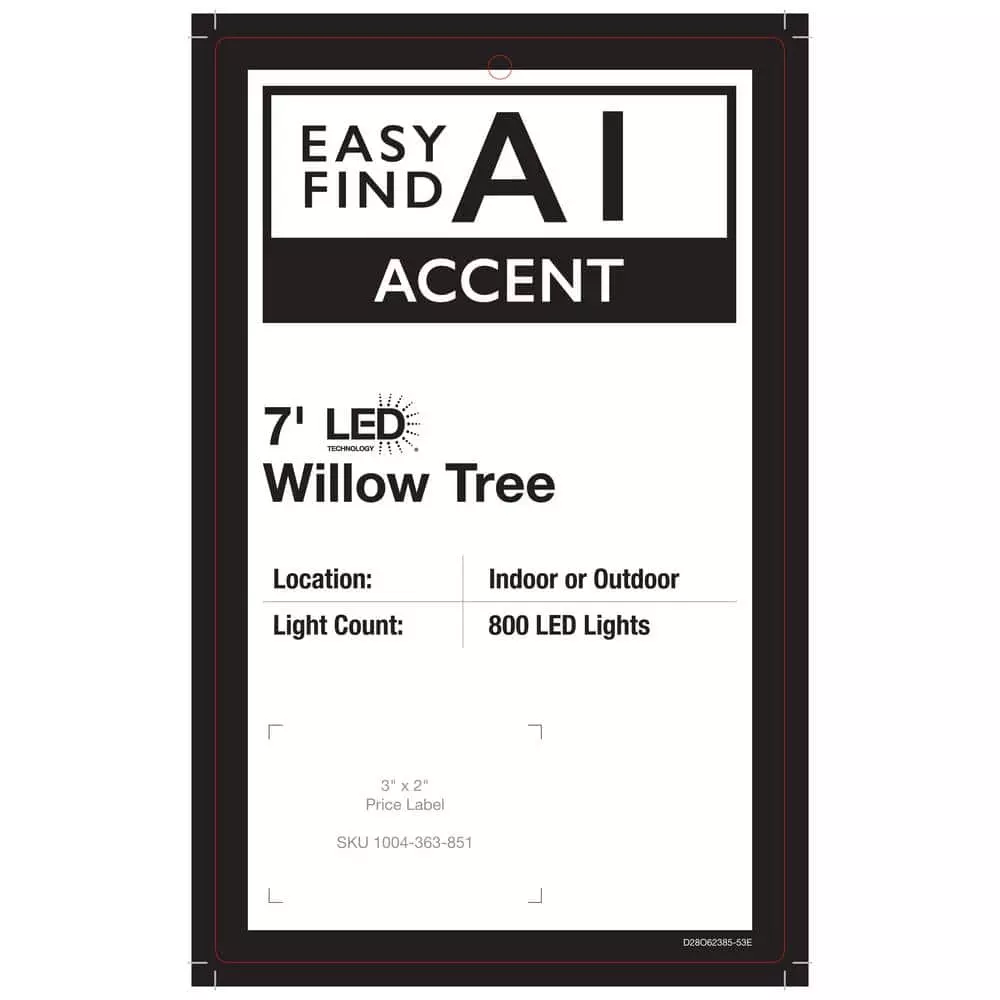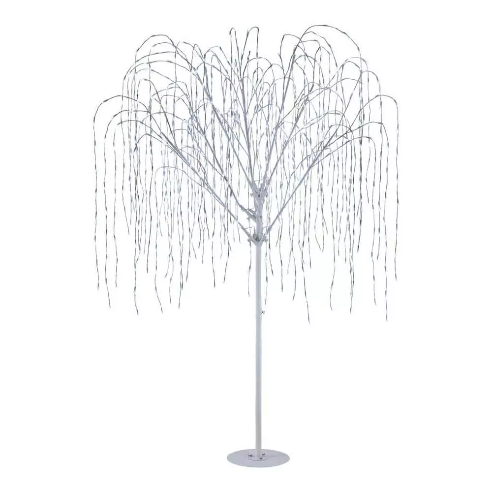 Create a snow-inspired winter scene with this 7-foot pre-lit willow tree. The 800 pure white LEDs create a brilliant lighting effect, illuminating your outdoor space throughout the night. A timer lets you set the lights to power on and off for hassle-free operation, while the included ground stake keeps this whimsical willow firmly in place. With a white metal frame, this pre-lit willow tree offers lasting durability and makes a beautiful addition to your holiday decor theme.