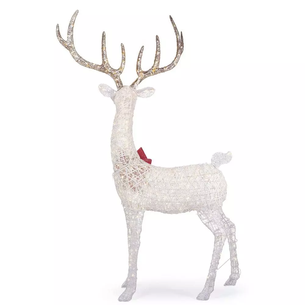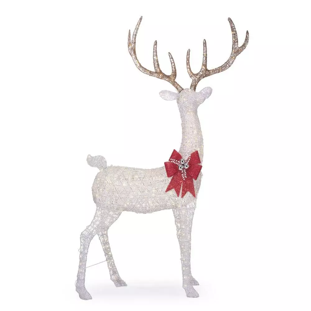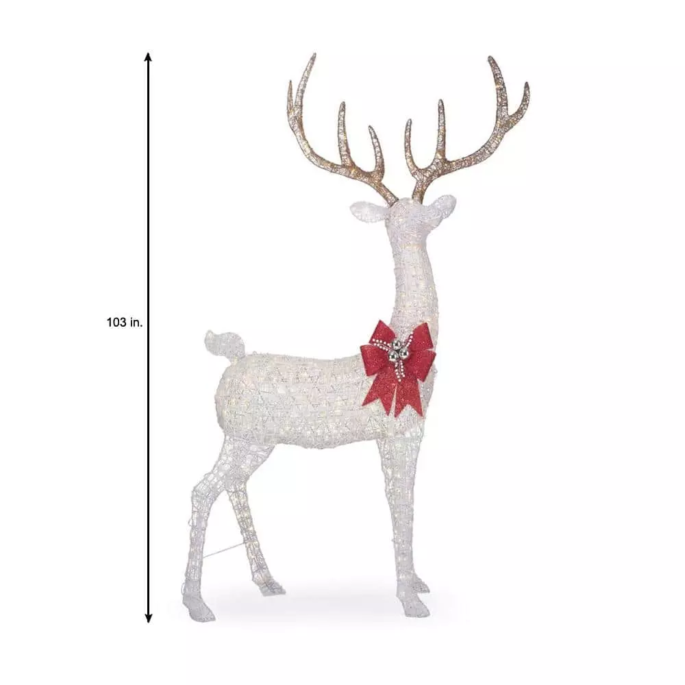 Easily bring in the holiday spirit with this 8.5 ft Warm White LED Giant Buck with Bow Holiday Yard Decoration. This works perfectly for your front yard or other outdoor space. It features white LEDs, PVC/metal construction and a weather-resistant design. It’s built to last season after season so you can enjoy your holidays.