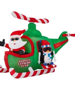 - Includes one animated Airblown inflatable helicopter with Santa and penguin