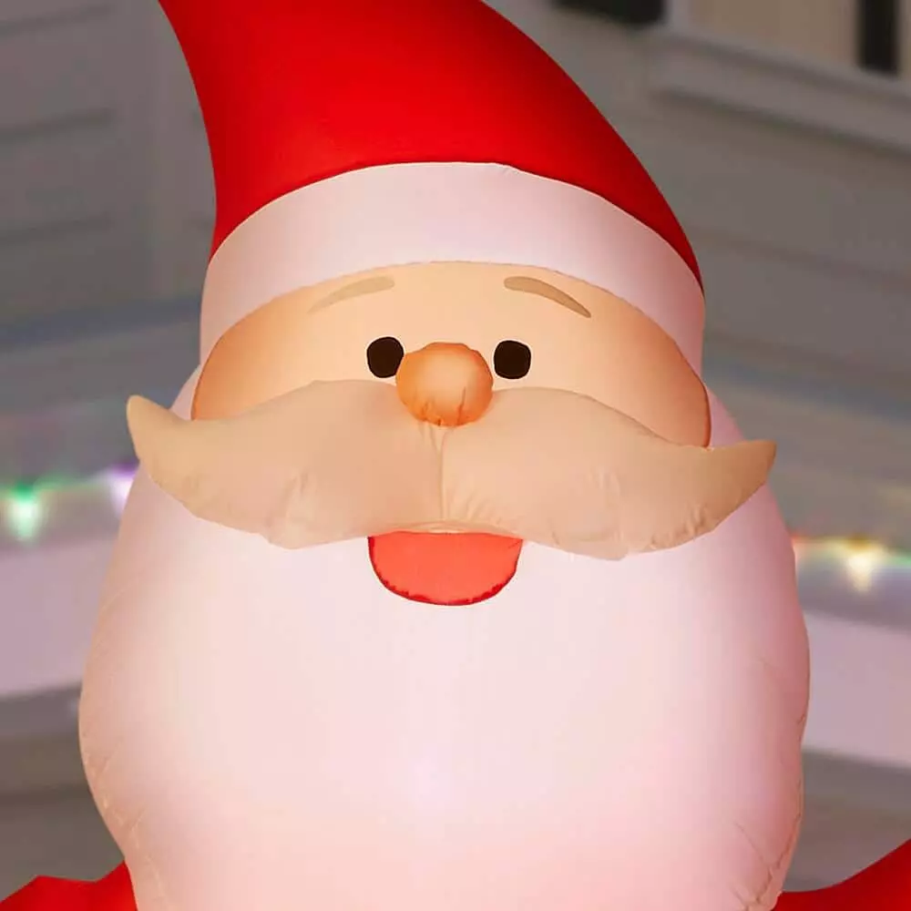 Capture the spirit of the season with this 9-foot pre-lit Airblown inflatable Santa. Dashingly dressed in his classic red suit, Saint Nick offers a warm, festive welcome to arriving family and friends, while the integrated LEDs produce a jolly shimmer to add sparkle to your celebrations. An included fan and self-inflating build ensure quick and simple setup, and stakes and tethers keep Santa firmly anchored on the ground. This weather-resistant Airblown inflatable Santa deflates easily for convenient storage, and a 5.25-foot cord gives you freedom over placement.
