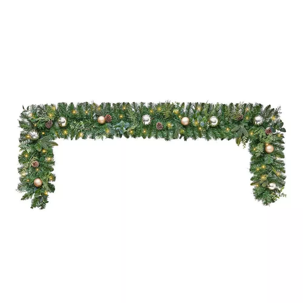 Capture classic Christmas cheer with this St. Germain battery-operated pre-lit LED artificial mixed pine garland. The warm white LED bulbs offer lasting illumination to brighten your home, while ornaments, cedars and pine cones adorn the lush branches for a sophisticated seasonal scene. A versatile battery-operated design lets this garland welcome the winter almost anywhere around your home from your covered porch to your mantel. With an included timer control, this St. Germain battery-operated pre-lit LED artificial mixed pine garland remains ready to sparkle throughout your gatherings.