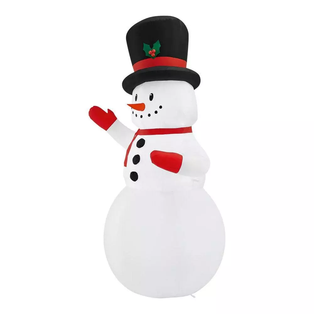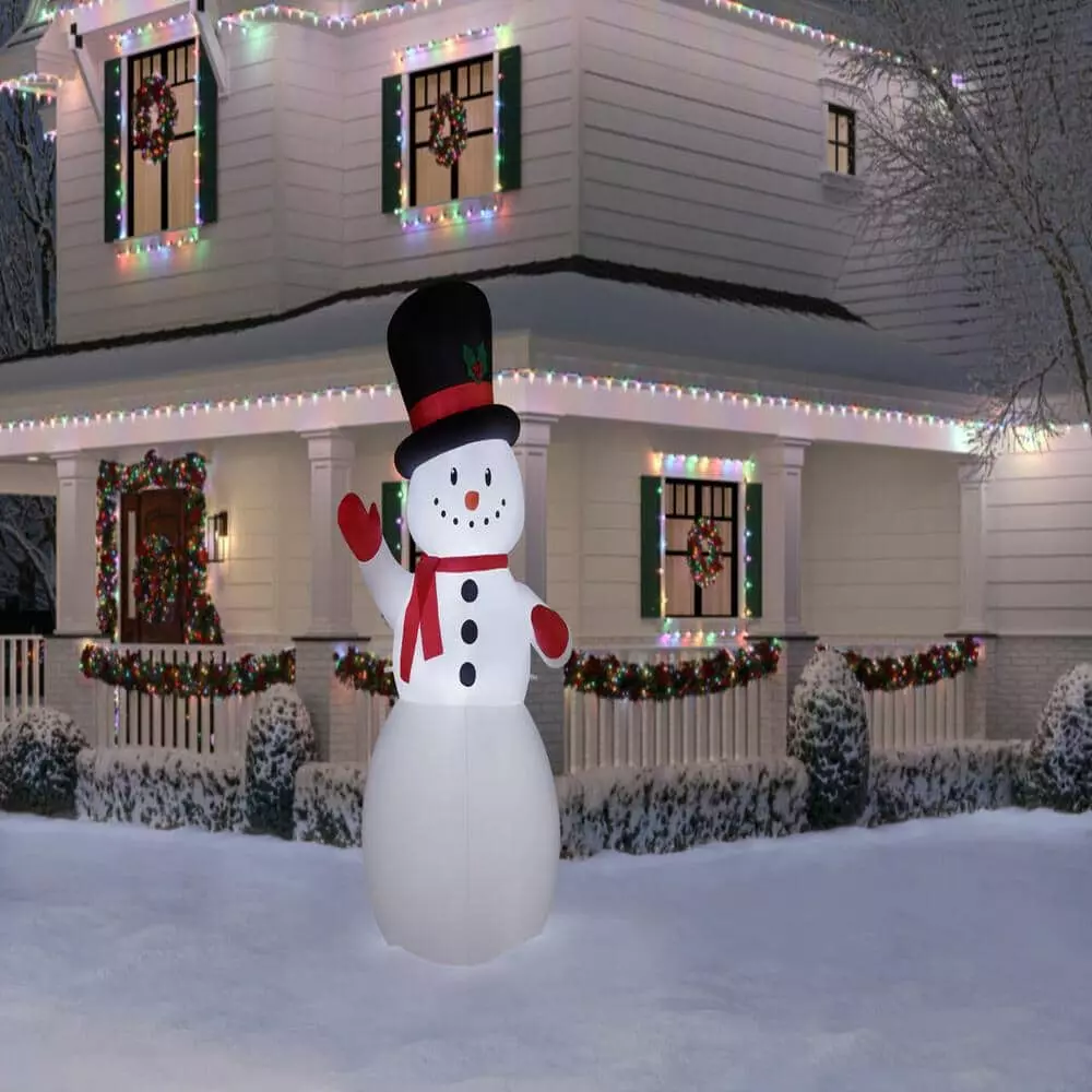 Get in the spirit of the season with this Airblown snowman Christmas inflatable. Rocking a dashing top hat and red winter gear, this delightful holiday addition sets a festive mood during your celebrations. Bright, energy-efficient LEDs deliver starry appeal once the night sets in, and the collapsible design allows convenient storage and transportation. This Airblown snowman Christmas inflatable self-inflates quickly to simplify installation, and the included stakes and tethers keep your accent stable throughout the yuletide season.