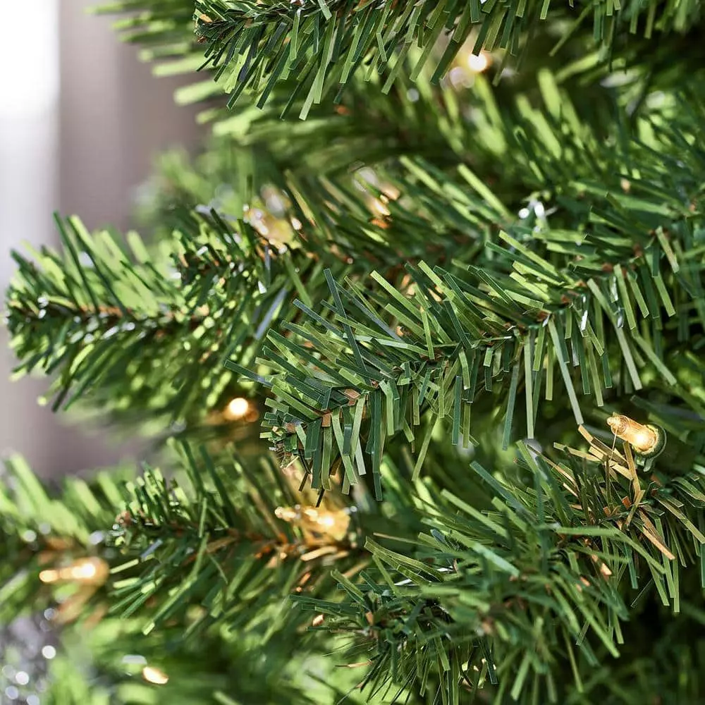Capture the spirit of the season with this Woodtrail Norway Spruce artificial green fir Christmas tree. The 5-foot tall profile makes it easy to fit in most rooms, while the 370 branch tips create a lush look for a touch of realism. Fitted with 200 clear white mini LEDs, this festive accent sparkles and glows to add a vibrant accent to your holiday gatherings. This Woodtrail Norway Spruce artificial green fir Christmas tree is flame resistant, allowing safe placement near your fireplace.